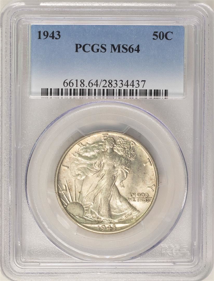 One 1943 Walking Liberty Half Dollar Coin PCGS MS64. PCGS Graded.