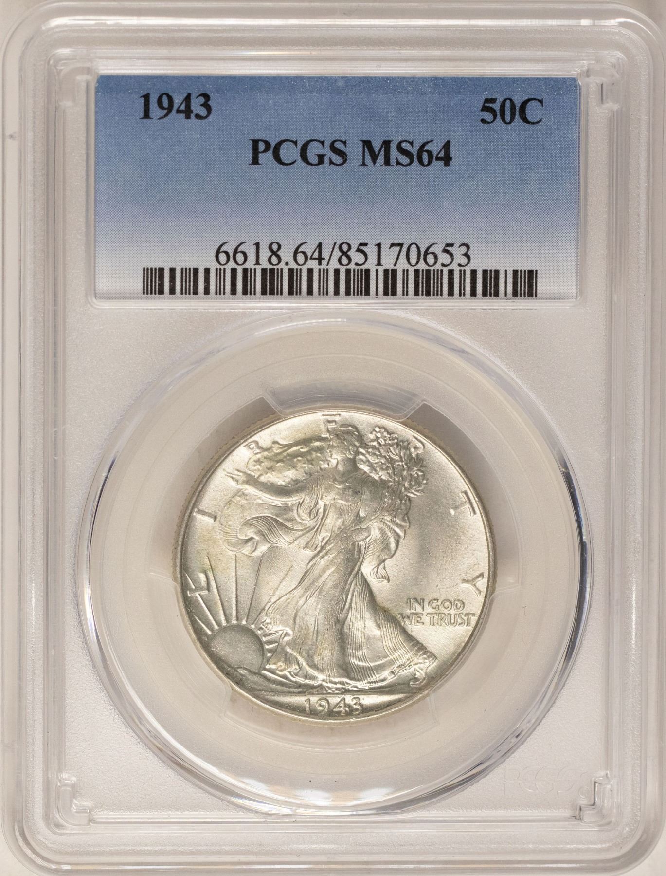 One 1943 Walking Liberty Half Dollar Coin PCGS MS64.