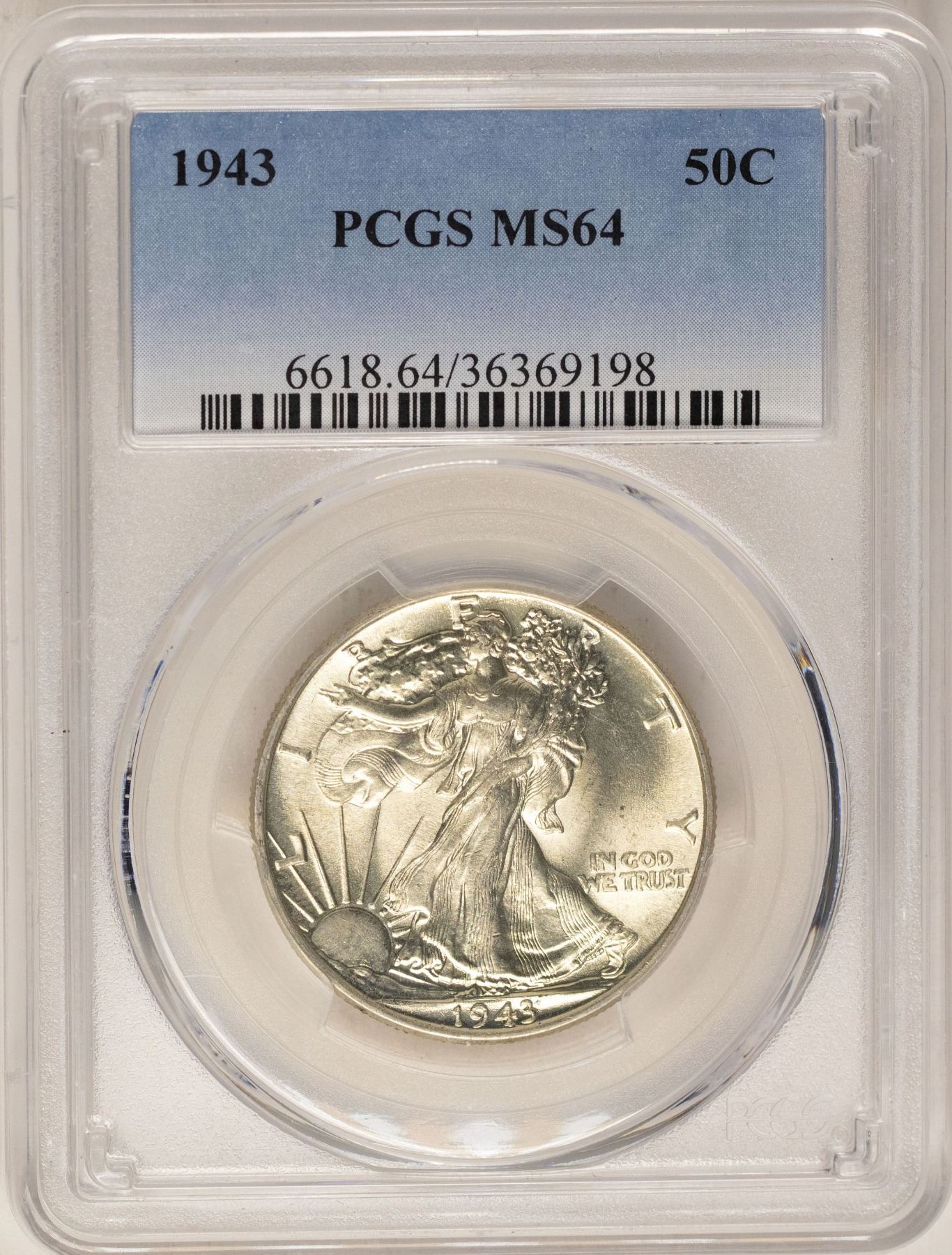 One 1943 Walking Liberty Half Dollar Coin PCGS MS64.