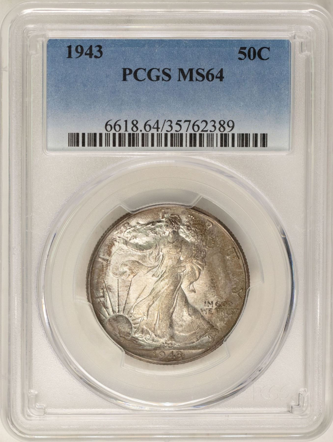 One 1943 Walking Liberty Half Dollar Coin PCGS MS64.