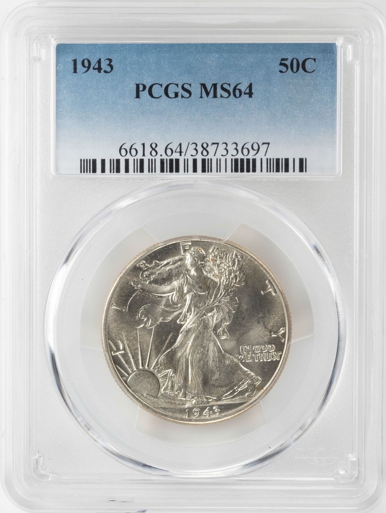 One 1943 Walking Liberty Half Dollar Coin PCGS MS64.