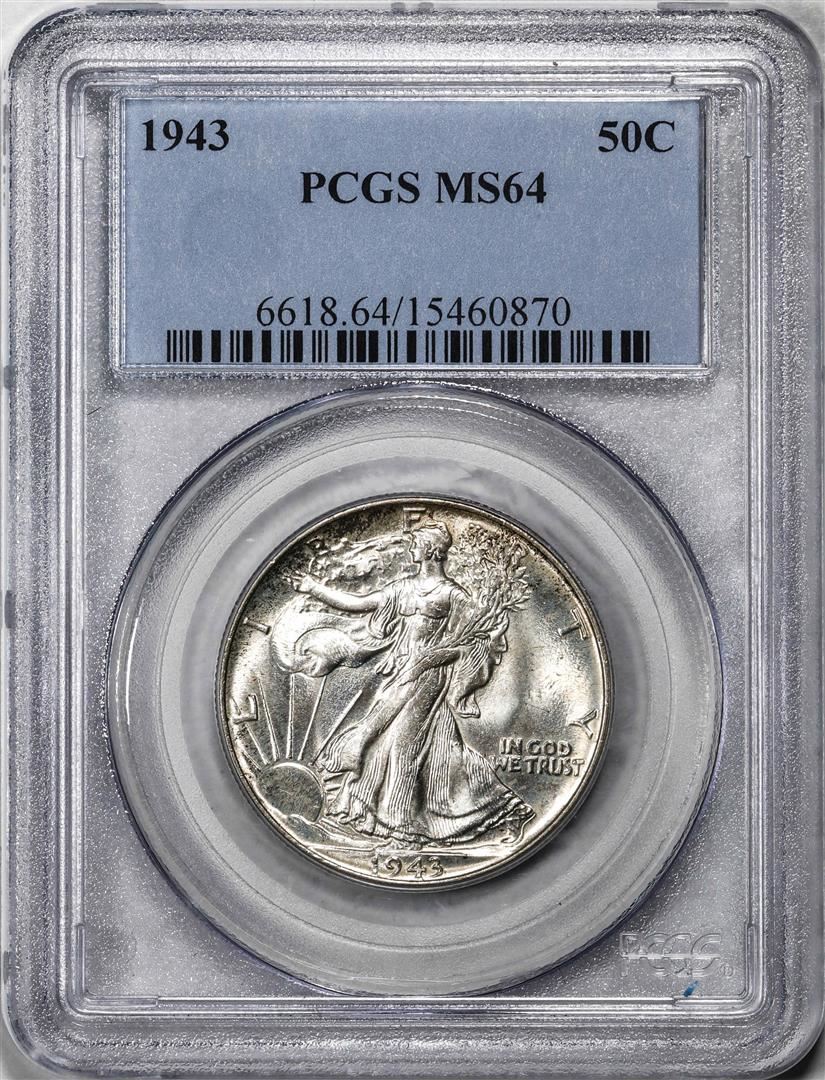 One 1943 Walking Liberty Half Dollar Coin PCGS MS64. PCGS Graded.
