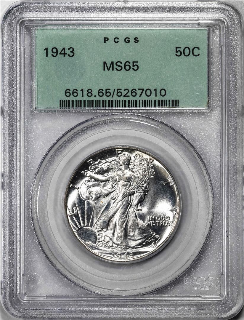 1943 Walking Liberty Half Dollar Coin PCGS MS65 Old Green Holder