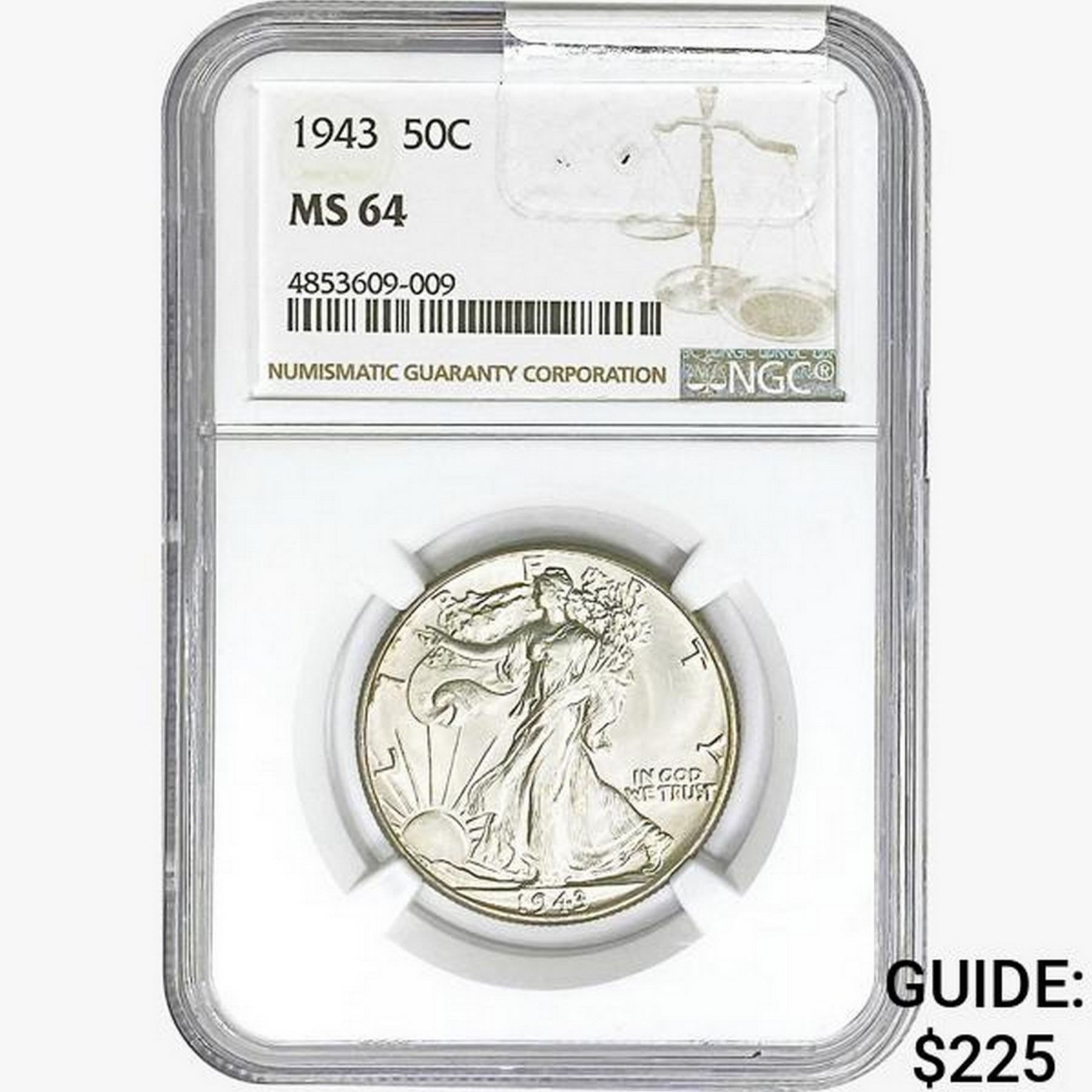 1943 Walking Liberty Half Dollar NGC MS64