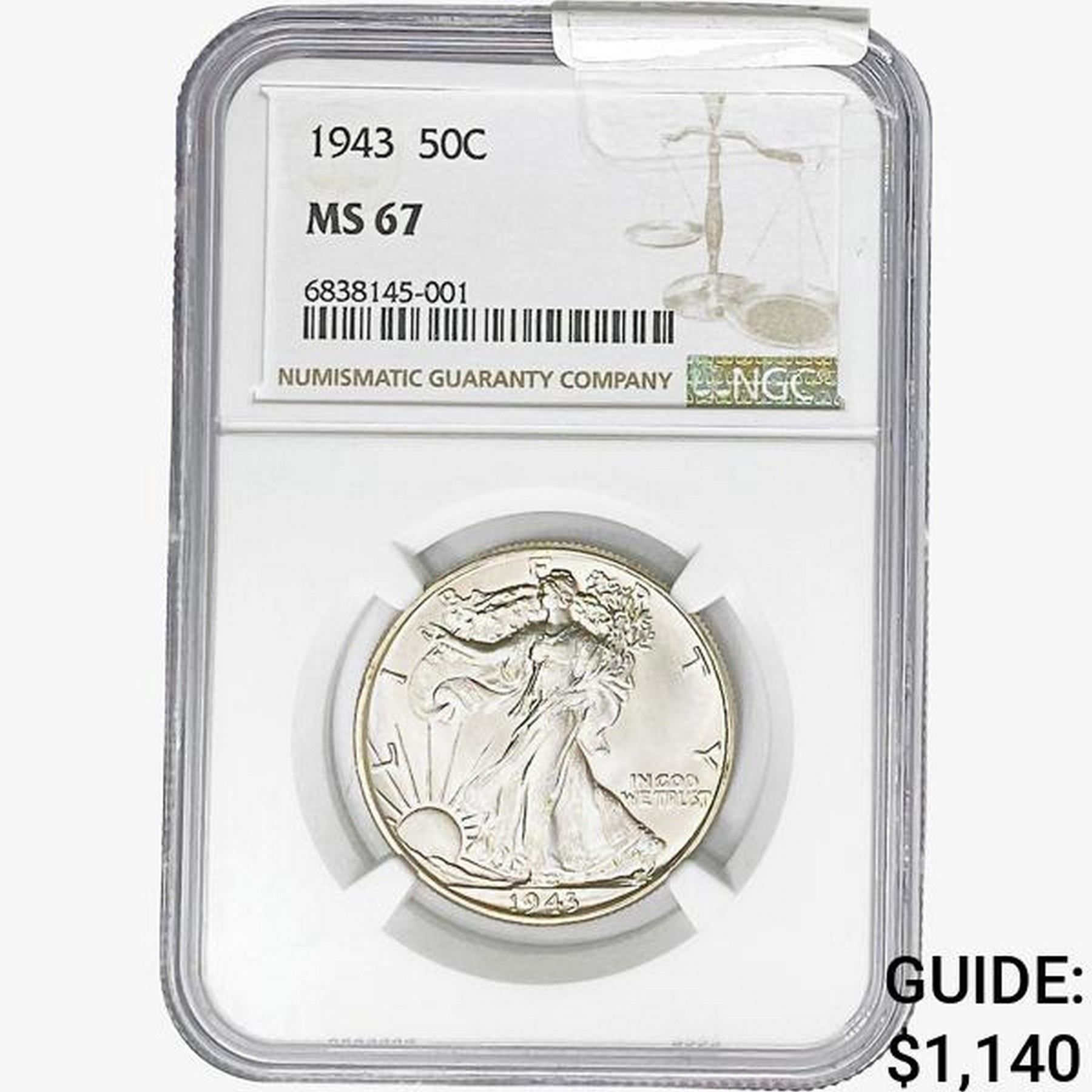 1943 Walking Liberty Half Dollar NGC MS67