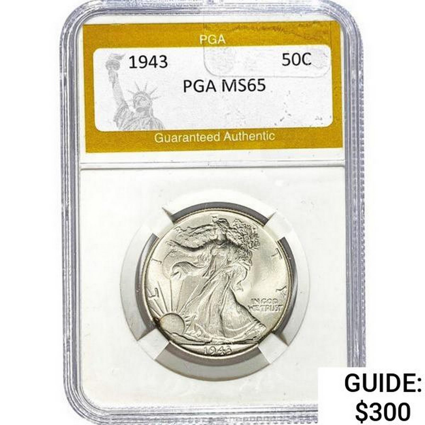 1943 Walking Liberty Half Dollar PGA MS65