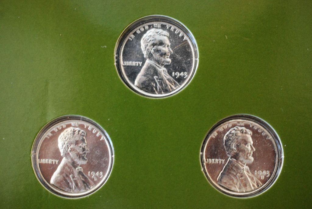1943 Wartime Steel Cents Coin Collection With History In Display Folder; Lot of 3 Coins; EST. $3-6