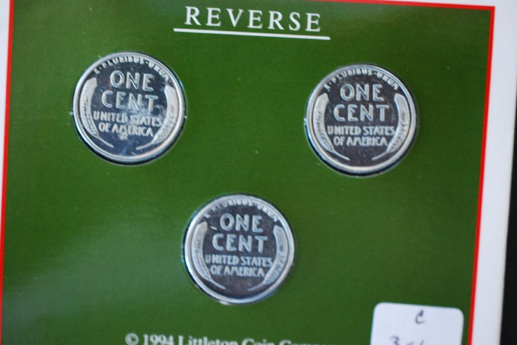 1943 Wartime Steel Cents Coin Collection With History In Display Folder; Lot of 3 Coins; EST. $3-6