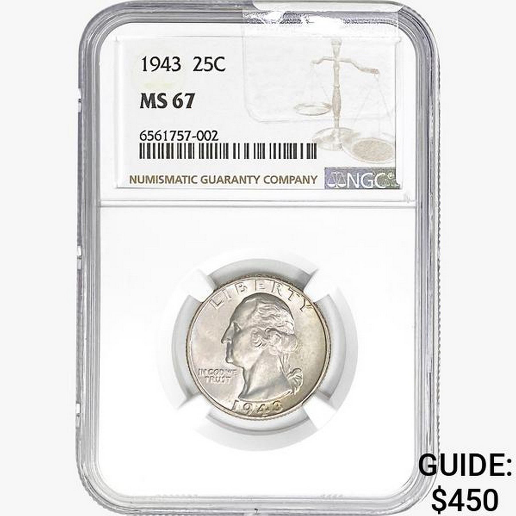 1943 Washington Silver Quarter NGC MS67