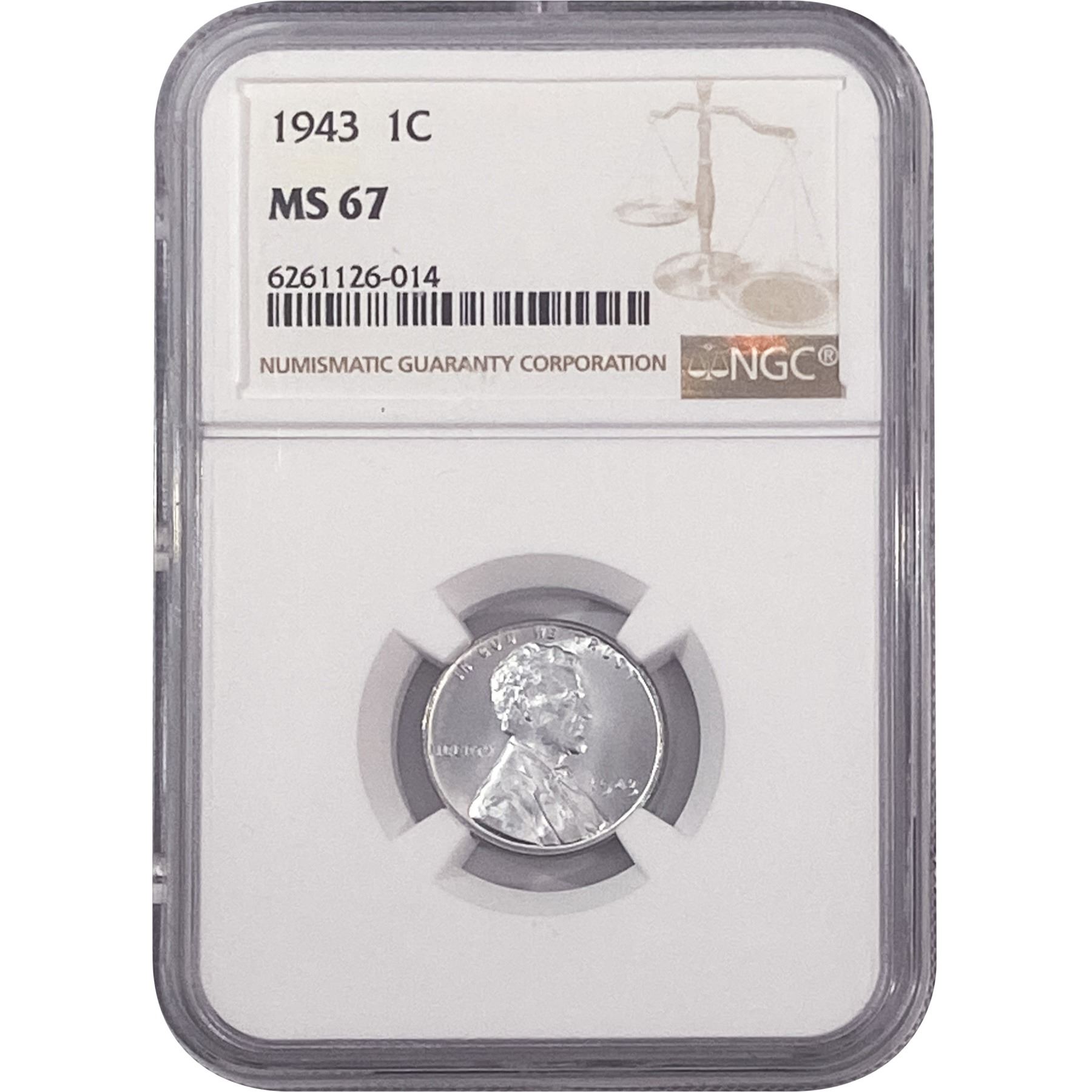 1943 Wheat Cent NGC MS67