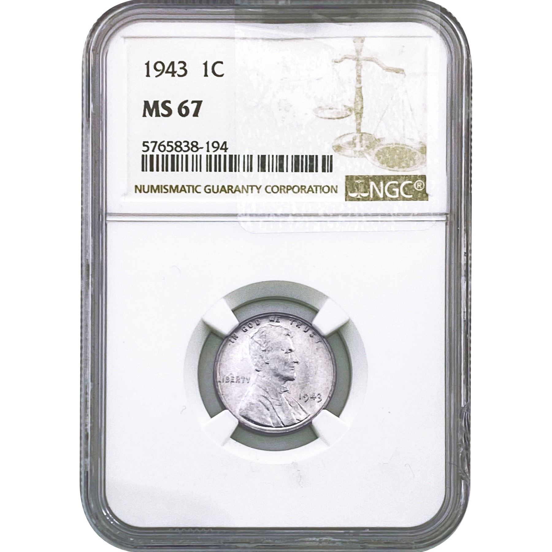 1943 Wheat Cent NGC MS67