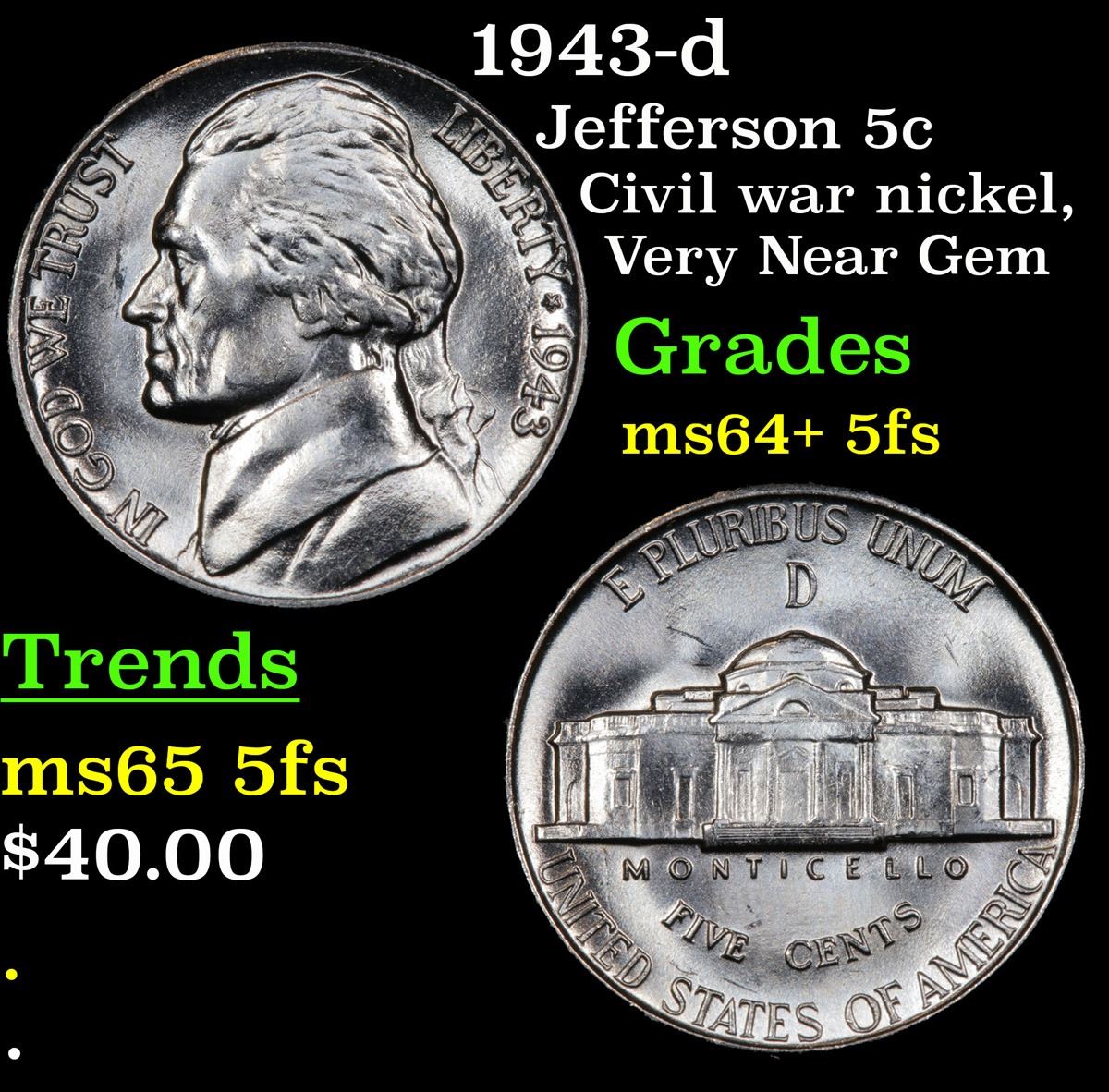 1943-d Jefferson Nickel 5c Grades Choice Unc+ 5fs.