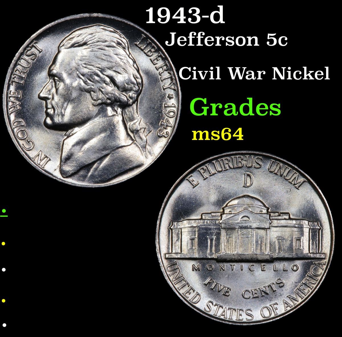 1943-d Jefferson Nickel 5c Grades Choice Unc.