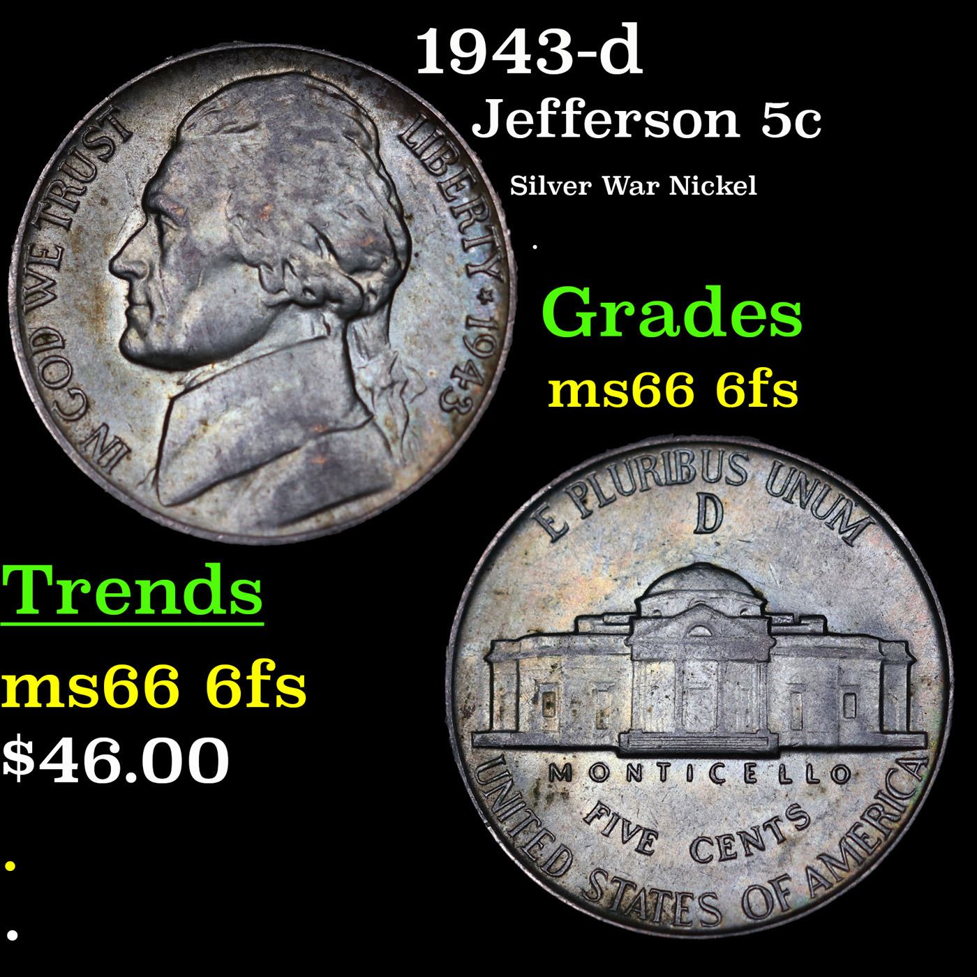 1943-d Jefferson Nickel 5c Grades GEM+ 6fs.