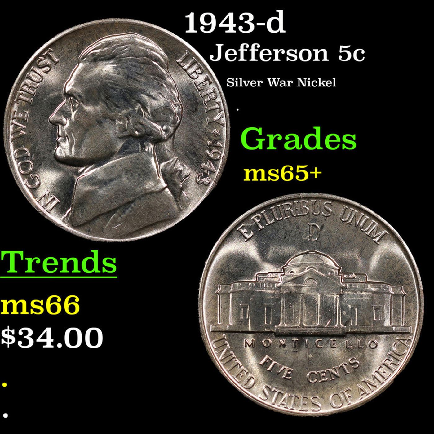 1943-d Jefferson Nickel 5c Grades GEM+ Unc.