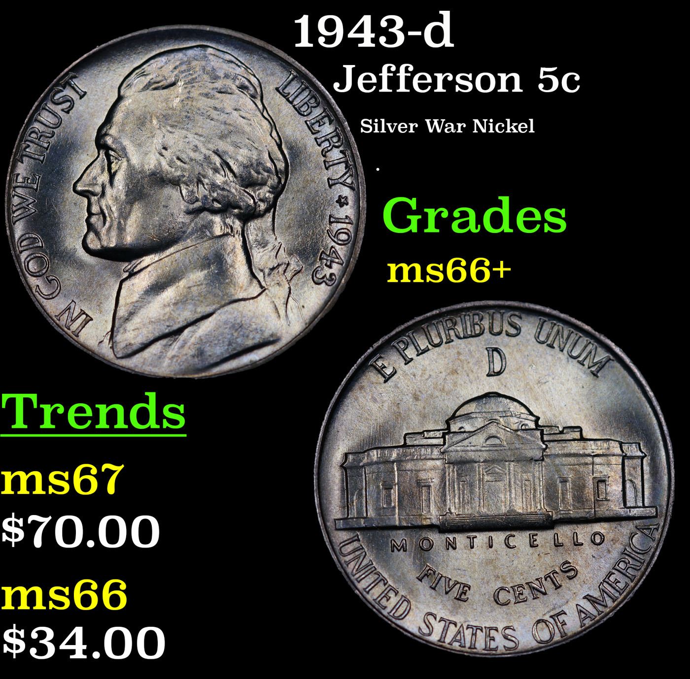 1943-d Jefferson Nickel 5c Grades GEM++ Unc.