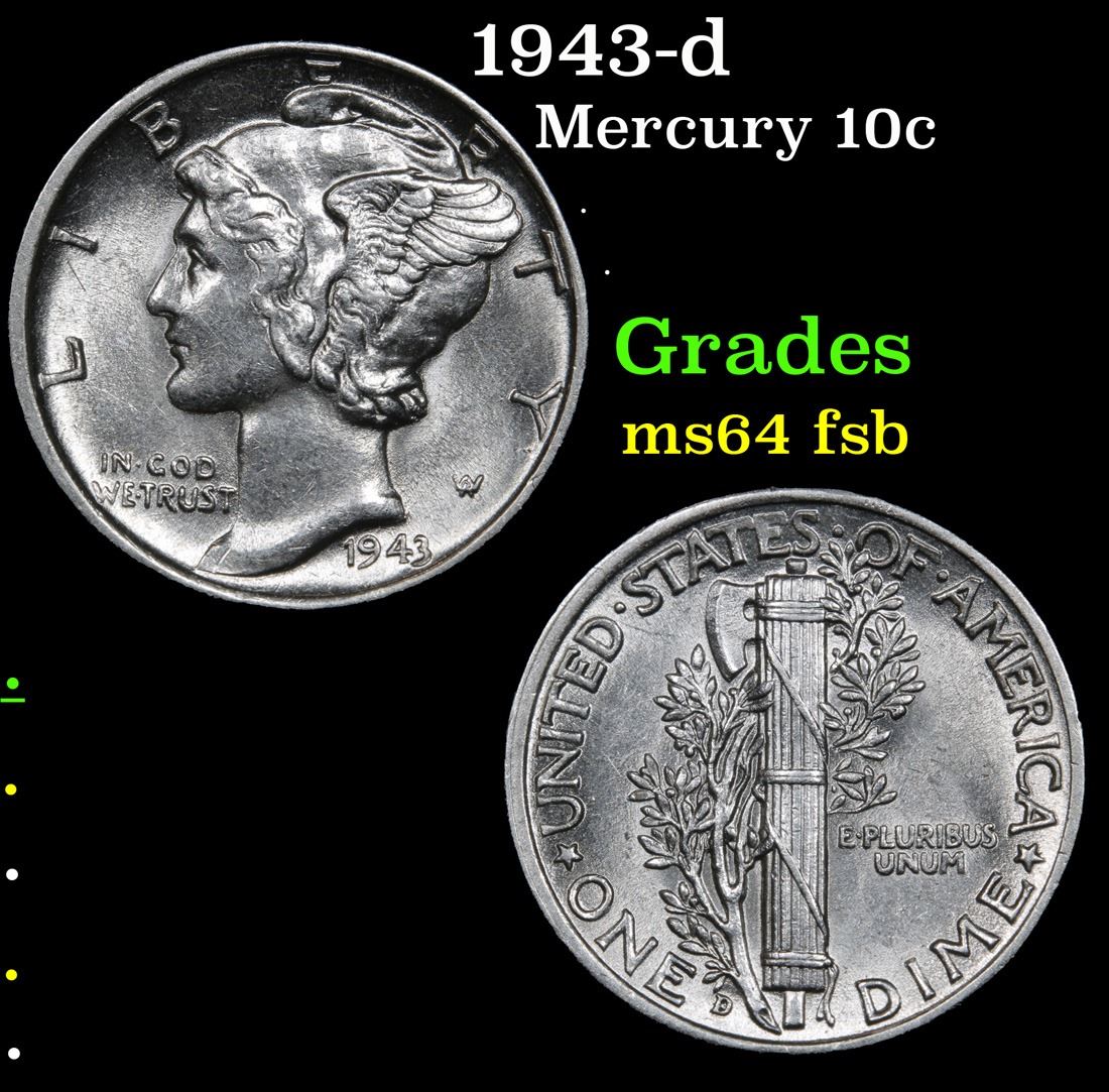 1943-d . . Mercury Dime 10c Grades Choice Unc FSB.