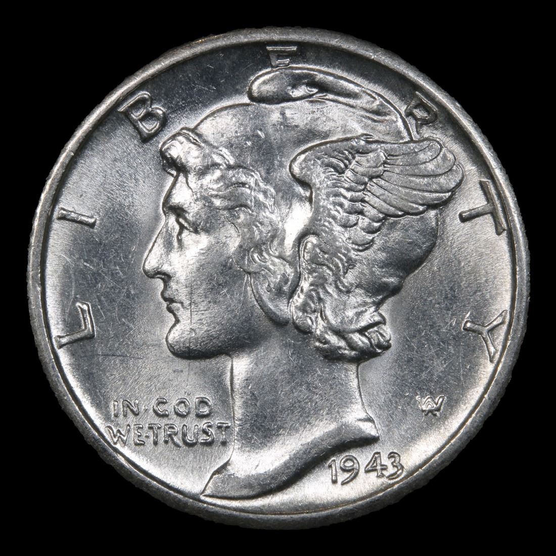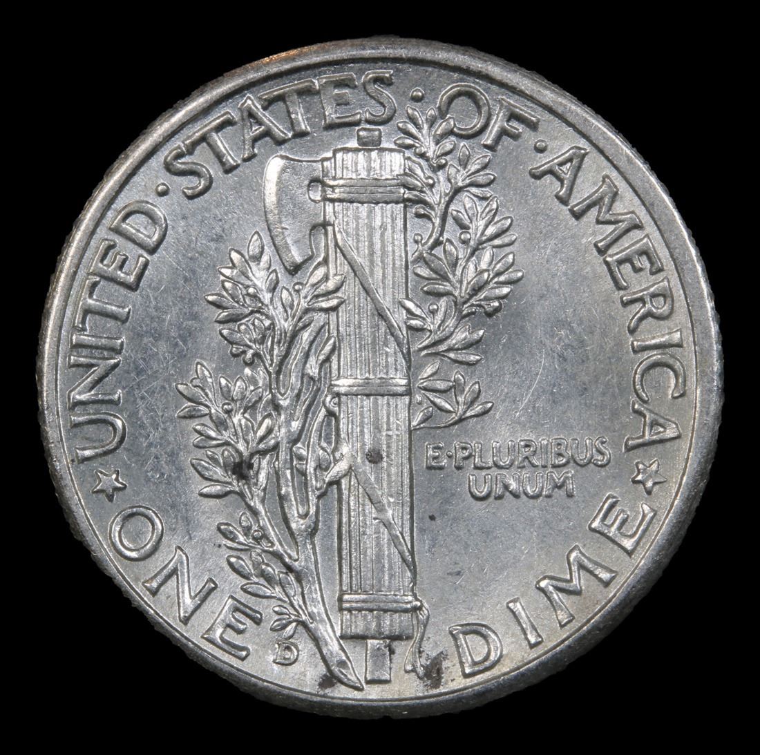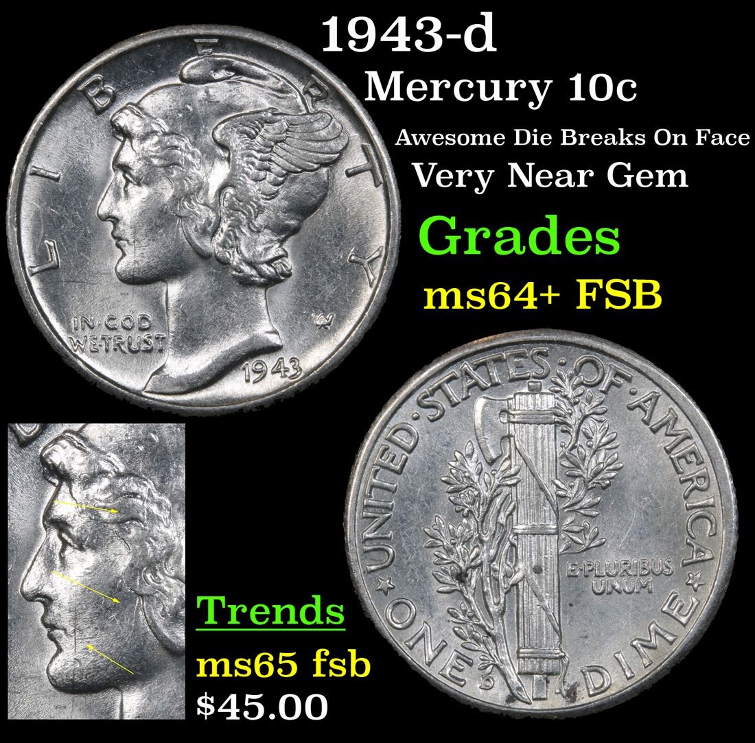 1943-d Awesome Die Breaks On Face Very Near Gem Mercury Dime 10c Grades Choice Unc+ FSB.
