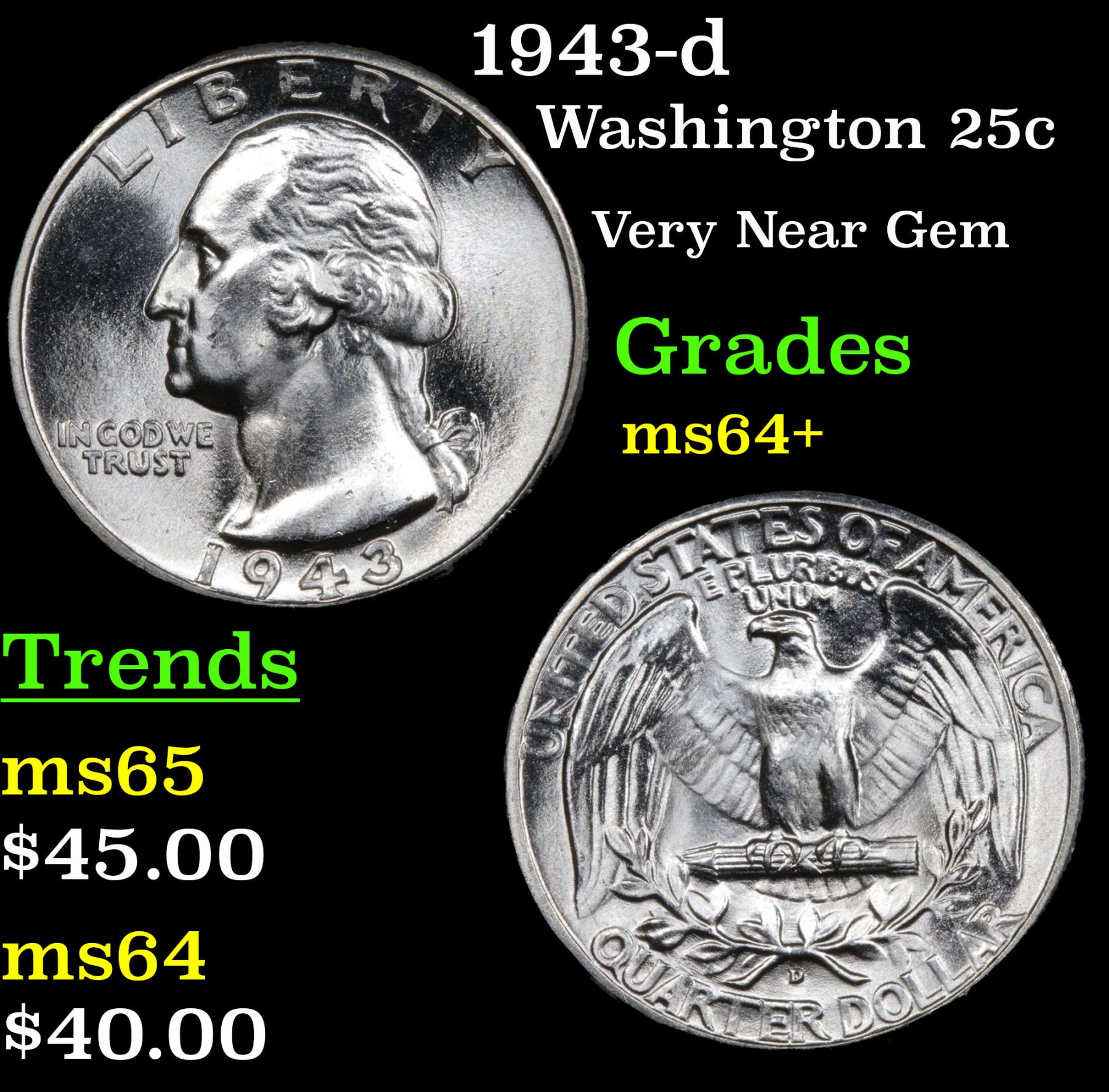 1943-d Washington Quarter 25c Grades Choice+ Unc.
