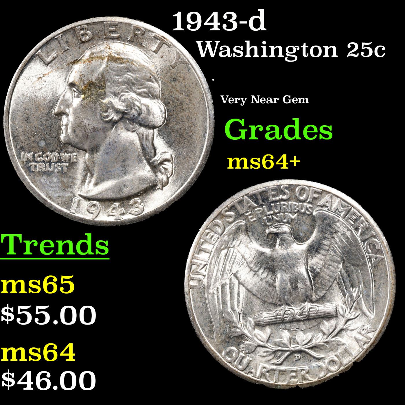 1943-d Washington Quarter 25c Grades Choice+ Unc