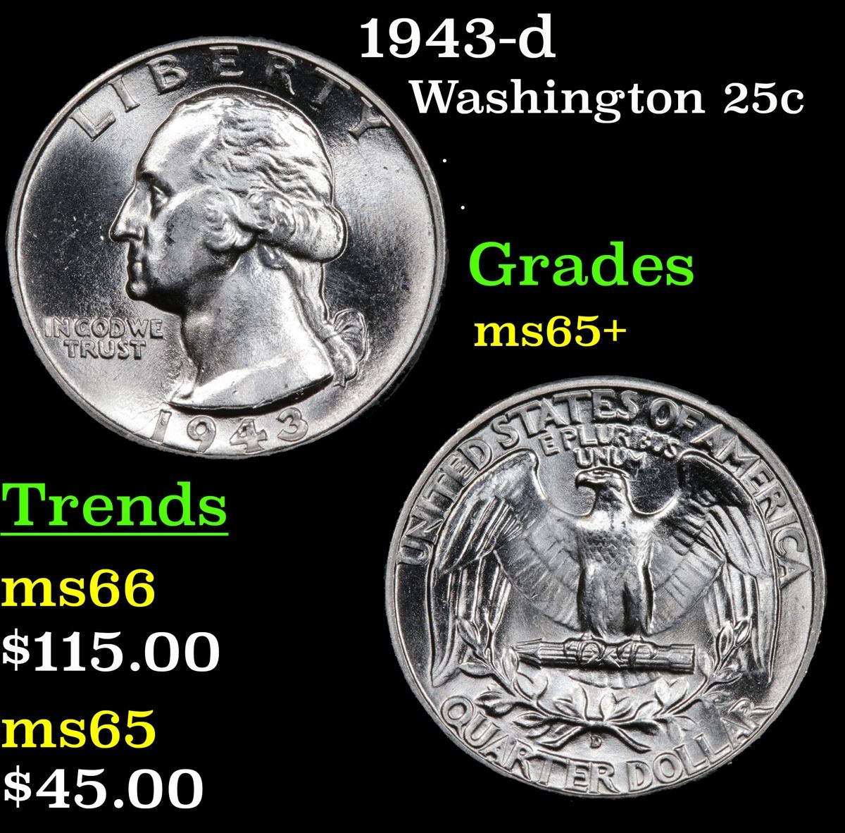 1943-d Washington Quarter 25c Grades GEM+ Unc.