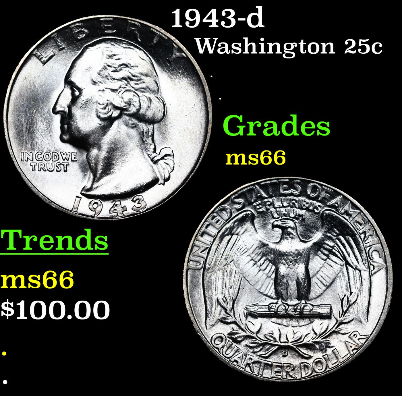 1943-d Washington Quarter 25c Grades GEM+ Unc.