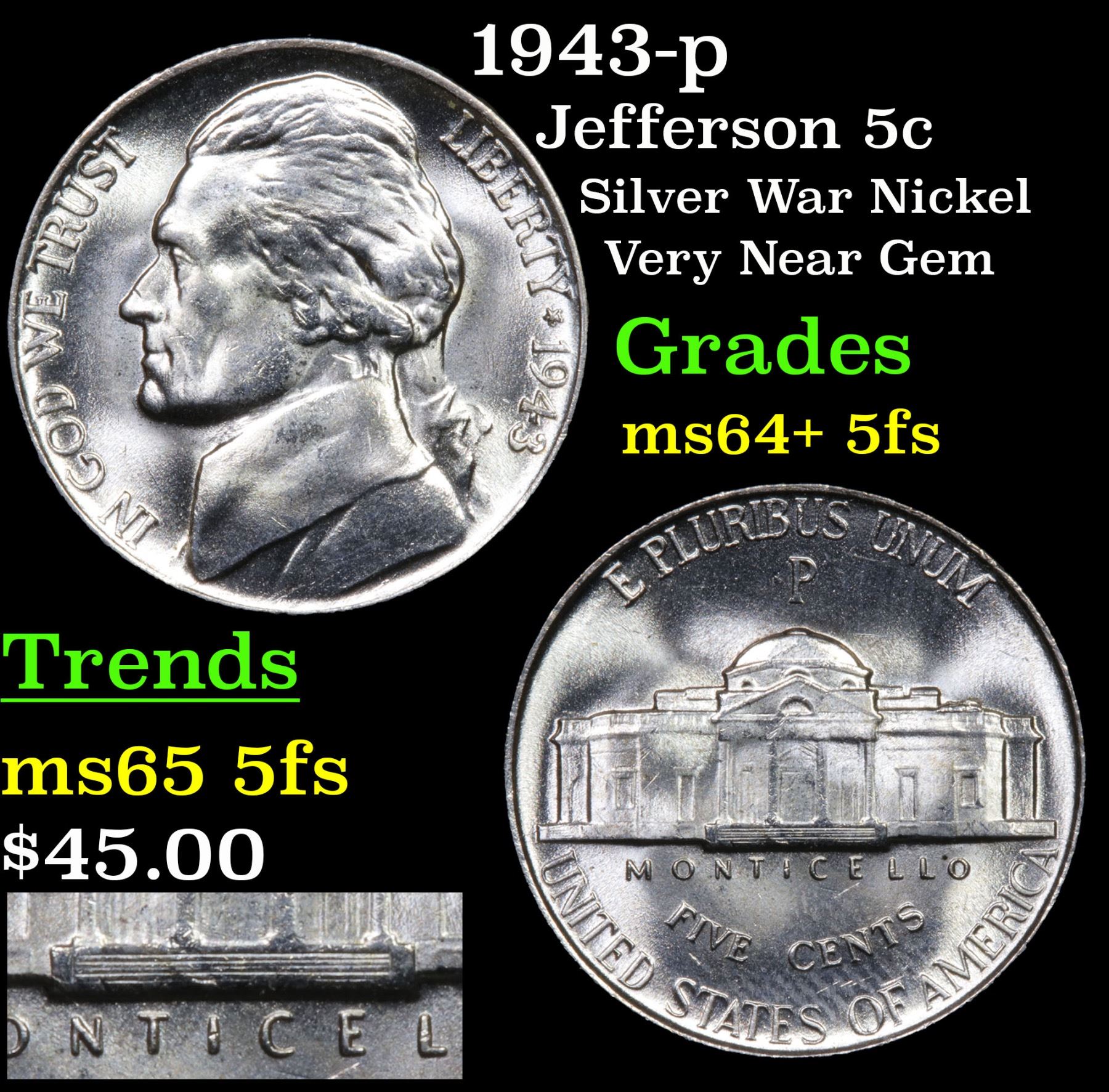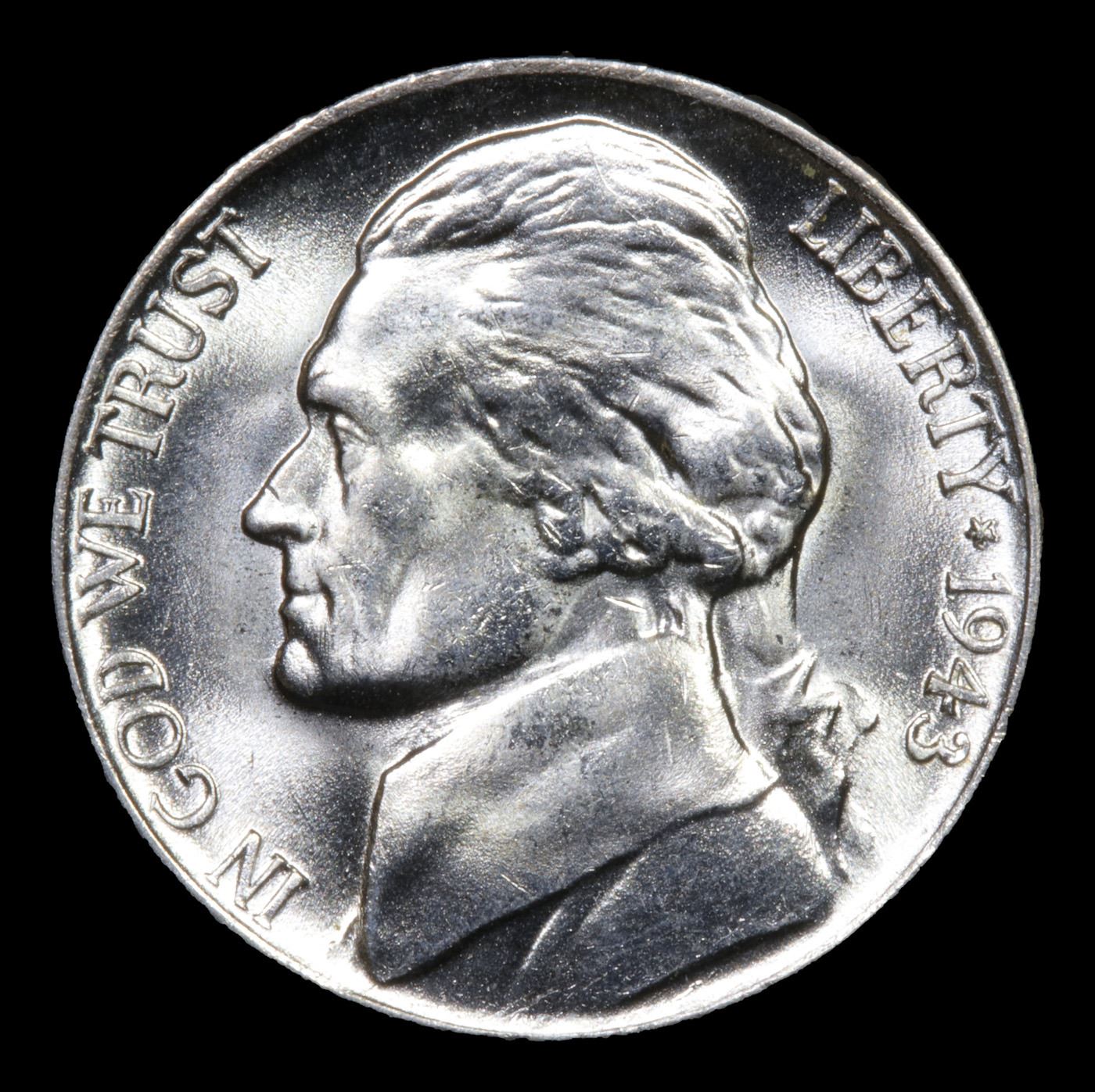 1943-p Jefferson Nickel 5c Grades Choice Unc+ 5fs.
