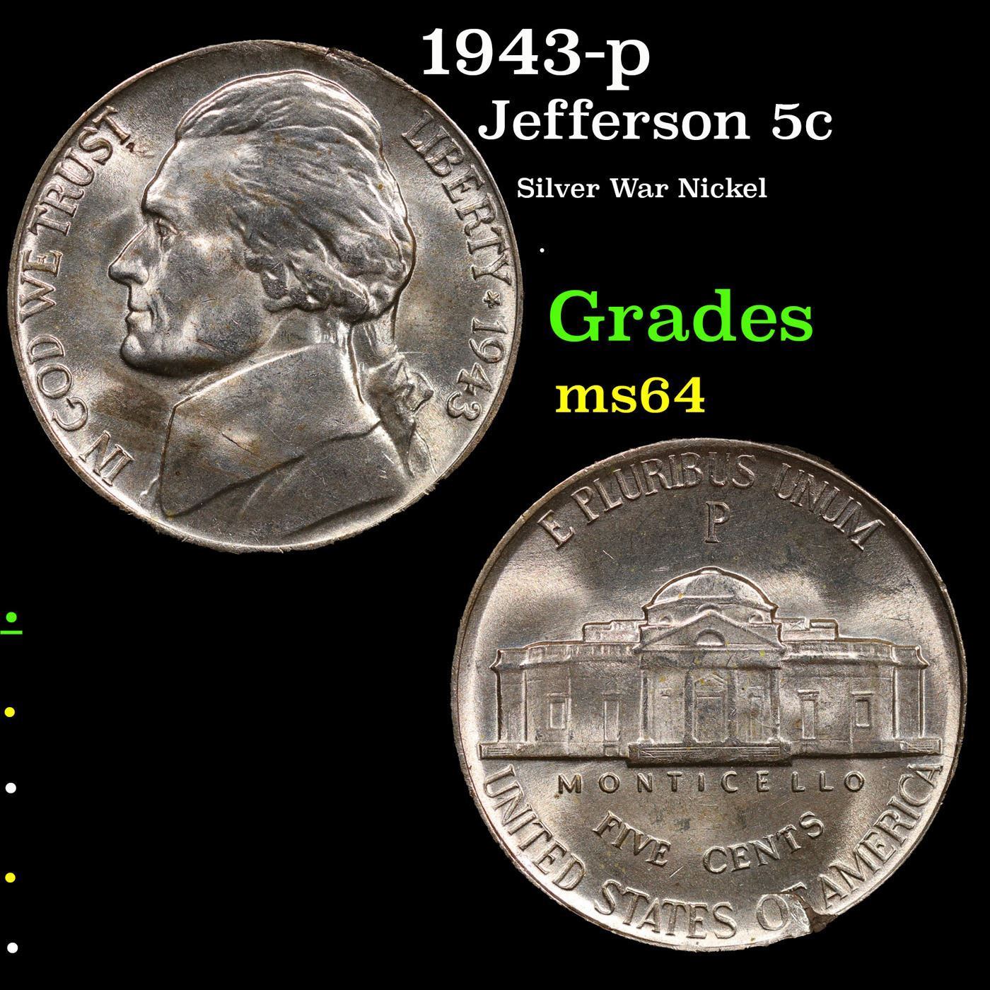 1943-p Jefferson Nickel 5c Grades Choice Unc.