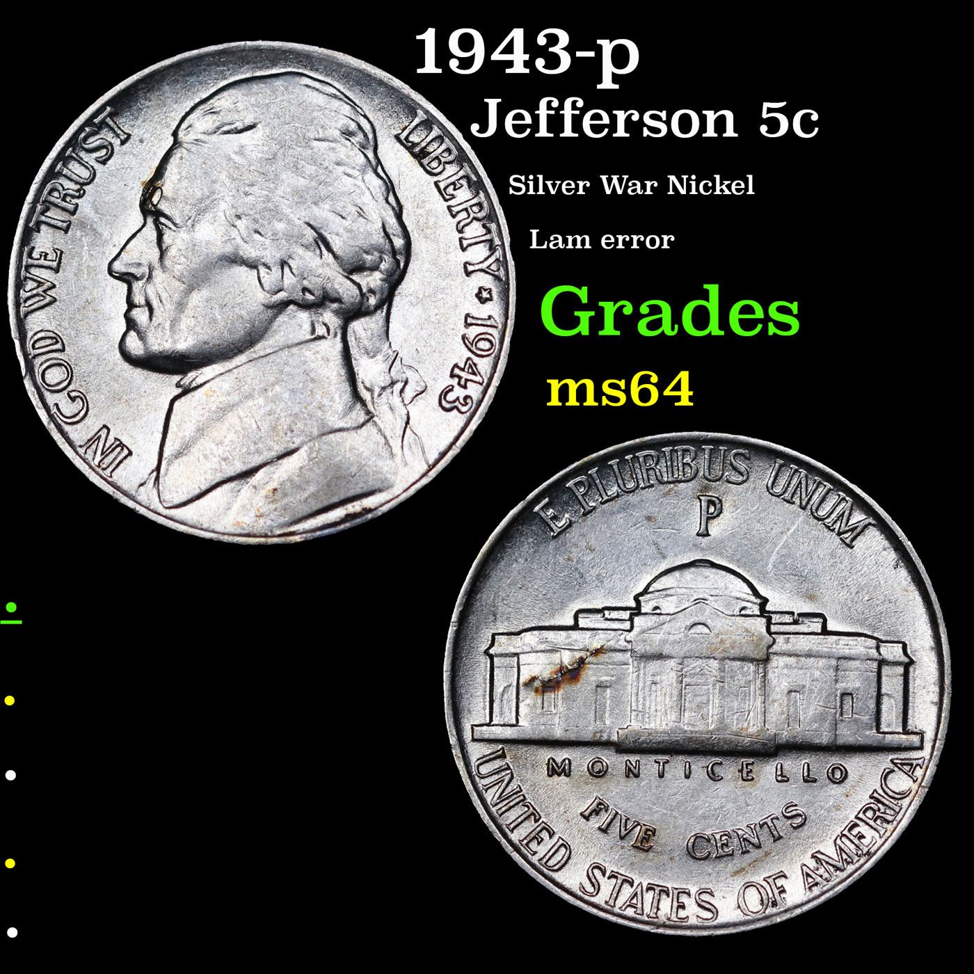 1943-p Jefferson Nickel 5c Grades Choice Unc.
