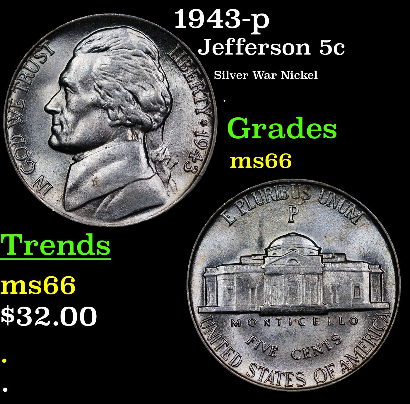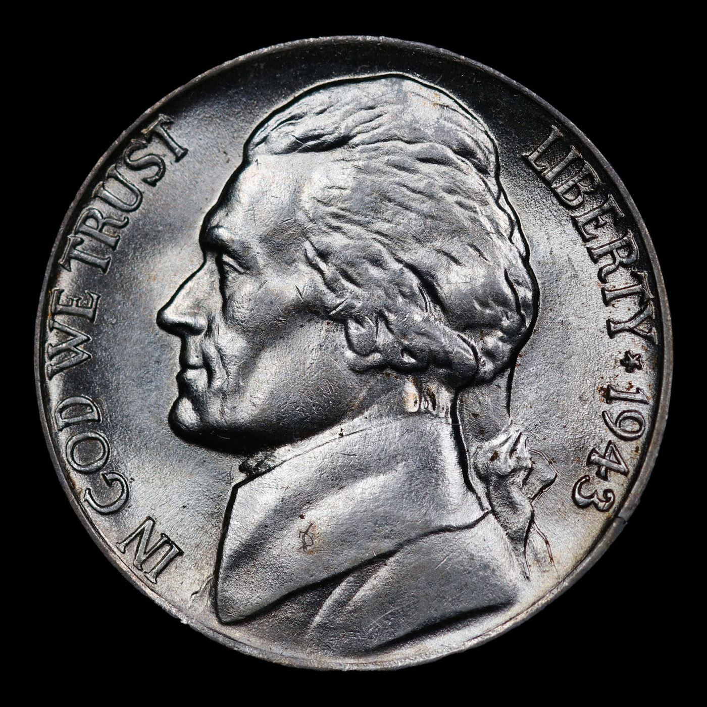 1943-p Jefferson Nickel 5c Grades GEM+ Unc.