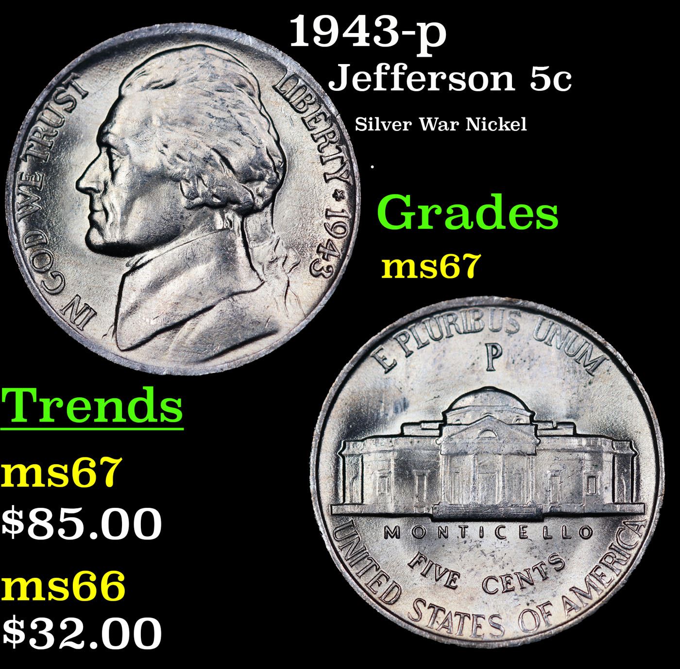 1943-p Jefferson Nickel 5c Grades GEM++ Unc.