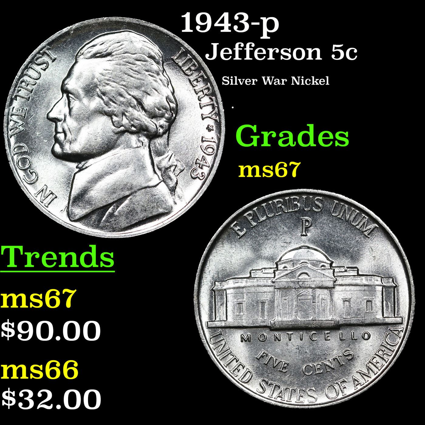 1943-p Jefferson Nickel 5c Grades GEM++ Unc.