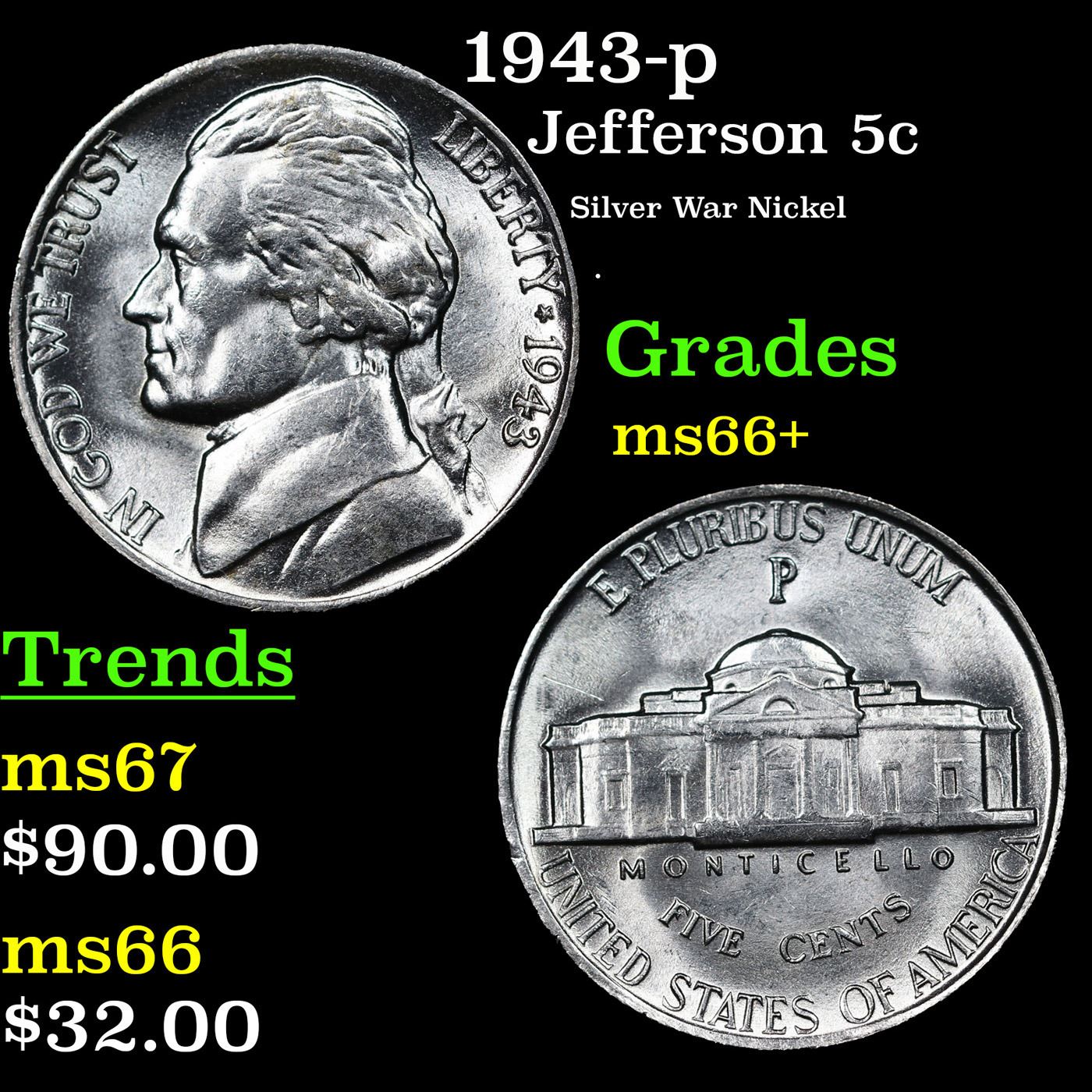 1943-p Jefferson Nickel 5c Grades GEM++ Unc.