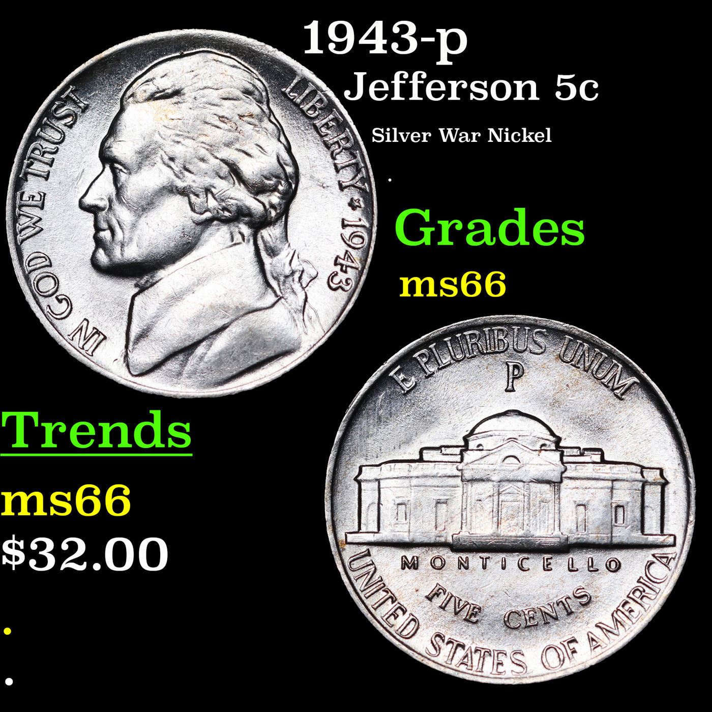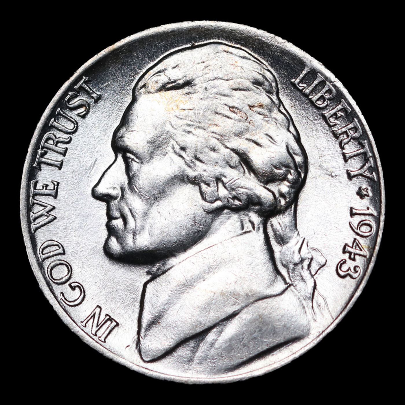1943-p Jefferson Nickel 5c Grades GEM+ Unc.