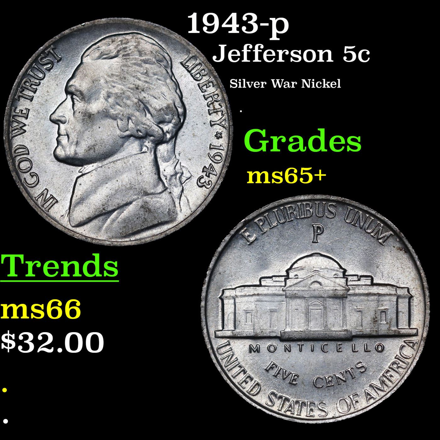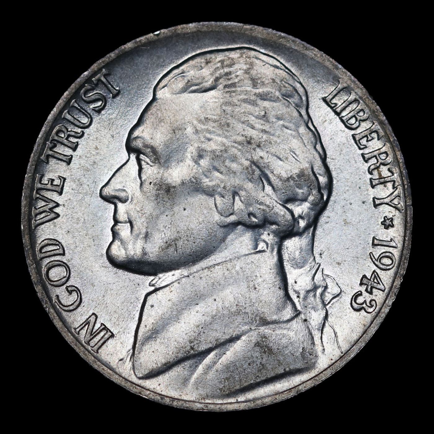 1943-p Jefferson Nickel 5c Grades GEM+ Unc.