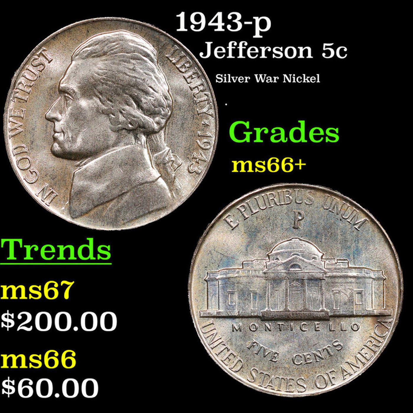 1943-p Jefferson Nickel 5c Grades GEM++ Unc.