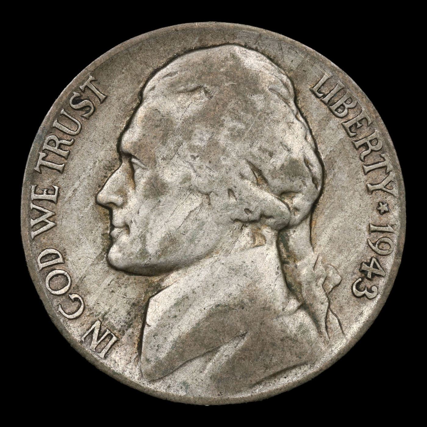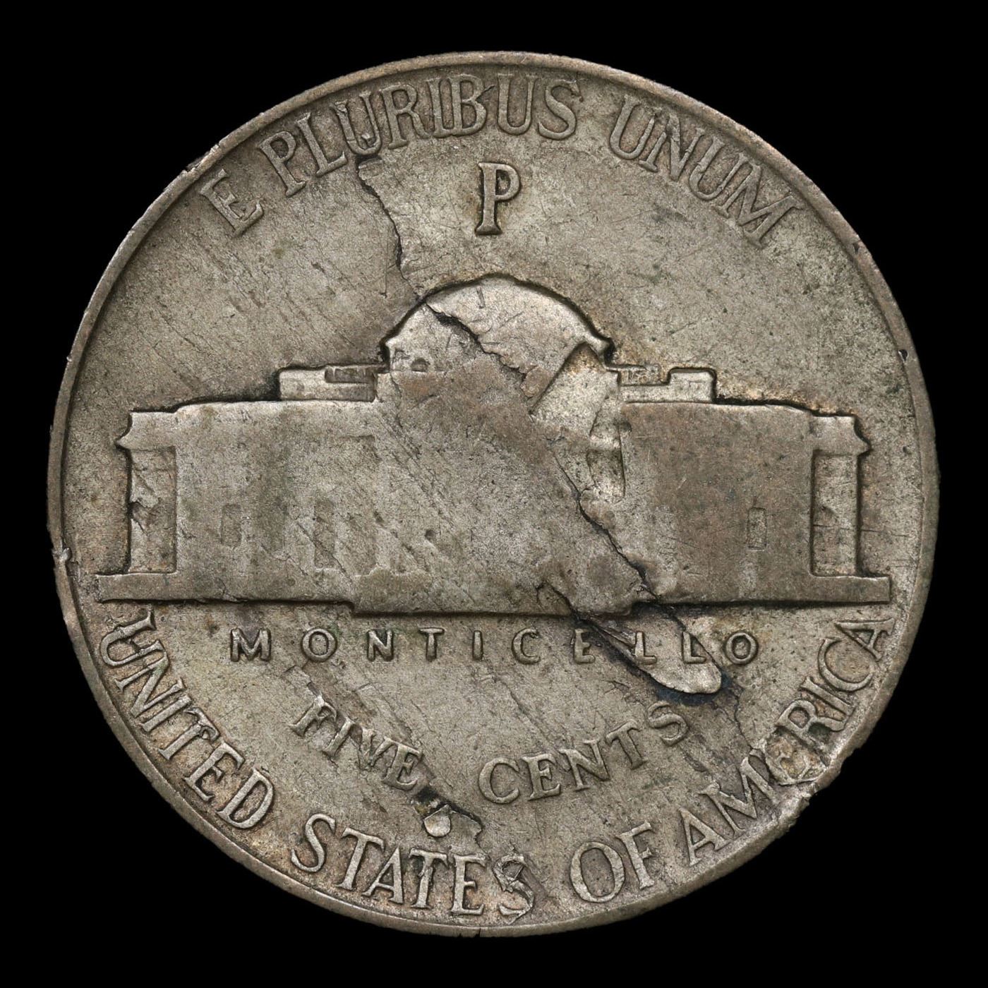 1943-p Mint Error Jefferson Nickel 5c Grades vg+.