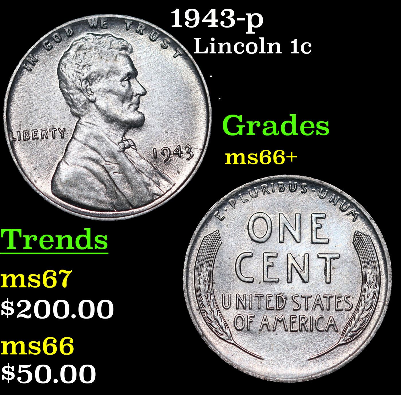 1943-p Lincoln Cent 1c Grades GEM++ Unc. One year type coin. The much heralded, "Steel" WWII cent. Great example of a favorite coin. The 1943-p Wartime issue Steel Cent.