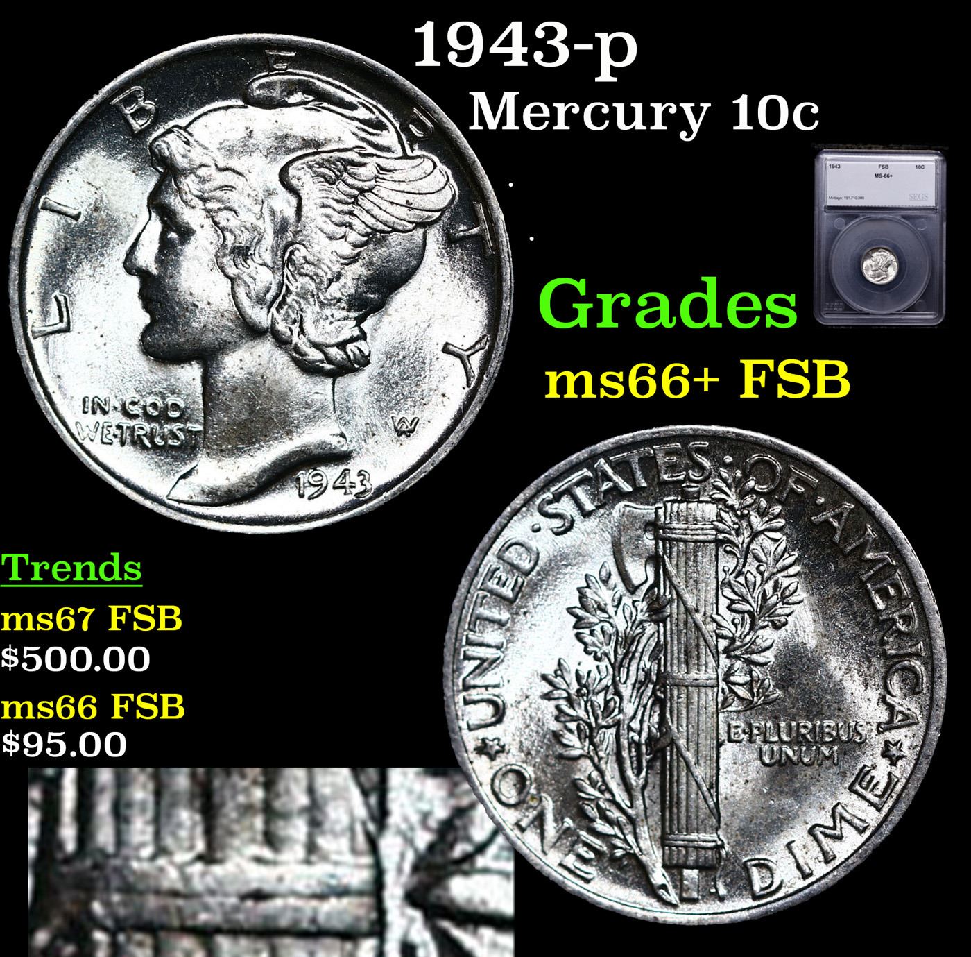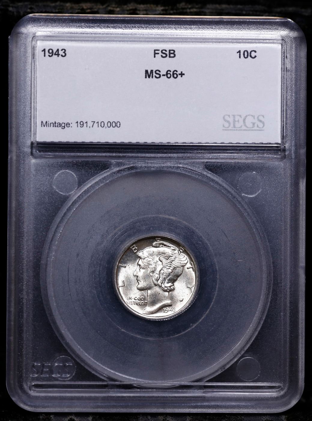 1943-p Mercury Dime 10c Graded ms66+ FSB BY SEGS.