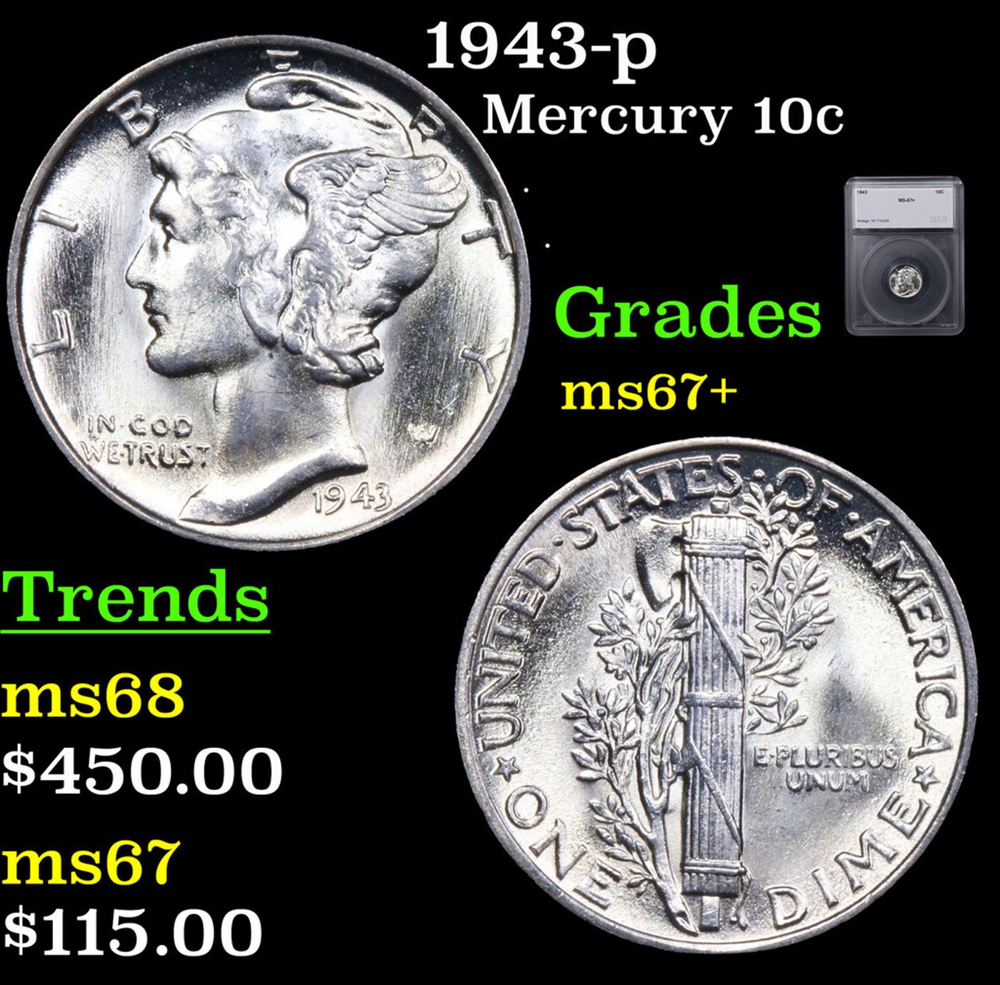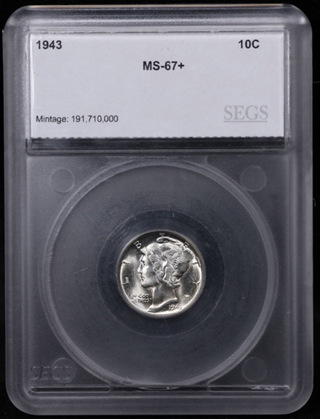 1943-p Mercury Dime 10c Graded ms67+ BY SEGS.