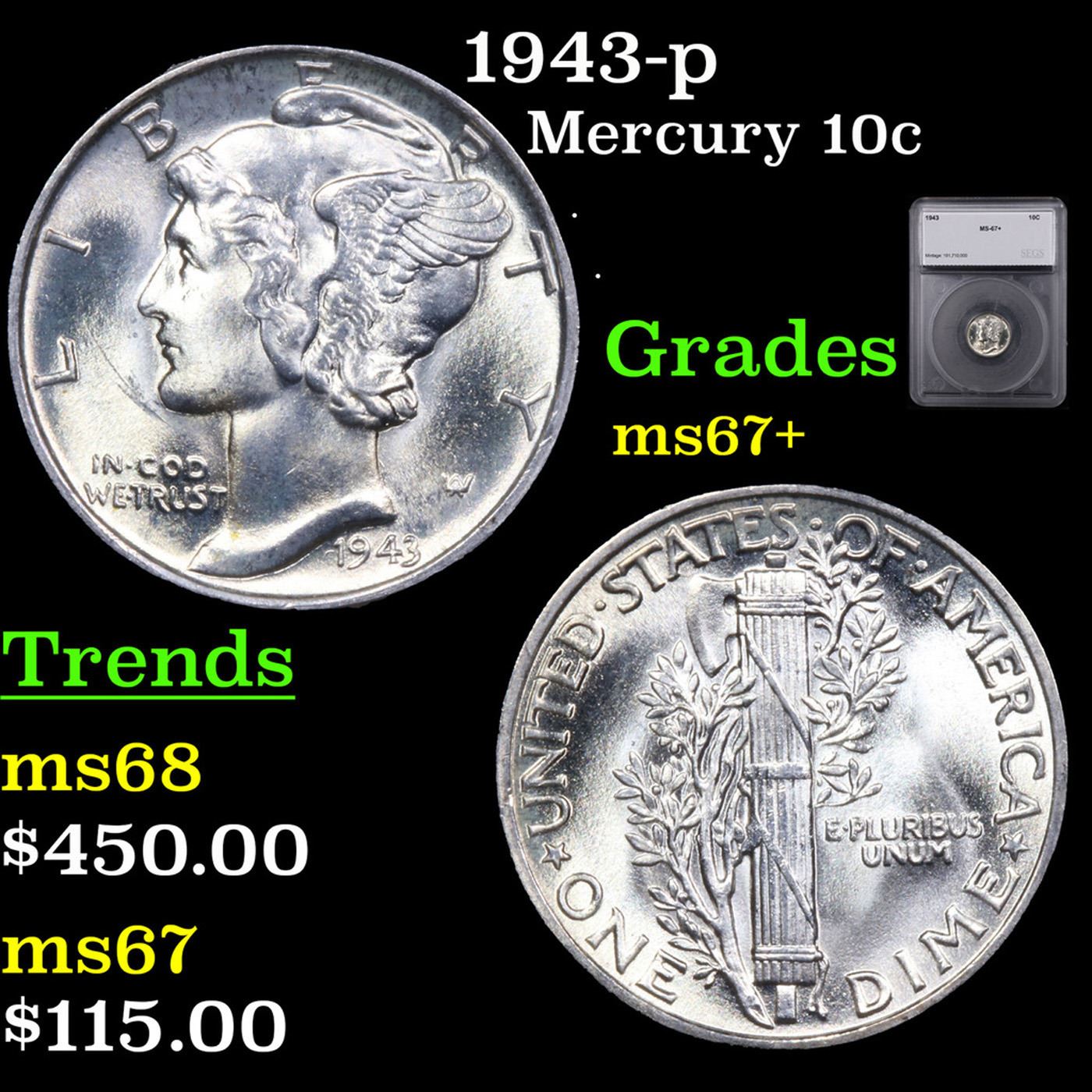 1943-p Mercury Dime 10c Graded ms67+ BY SEGS.