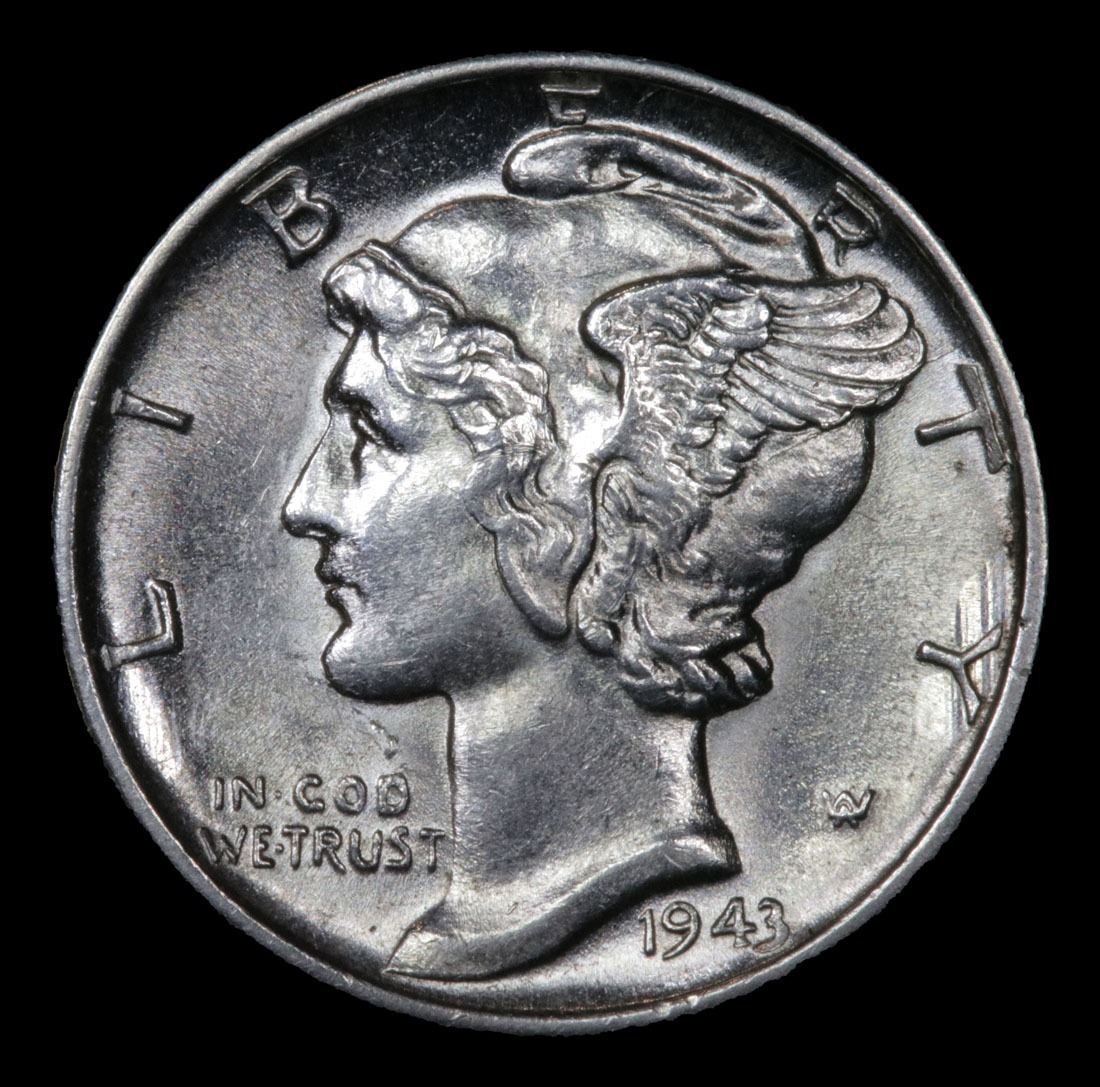 1943-p . Very Near Gem Mercury Dime 10c Grades Choice Unc+ FSB.