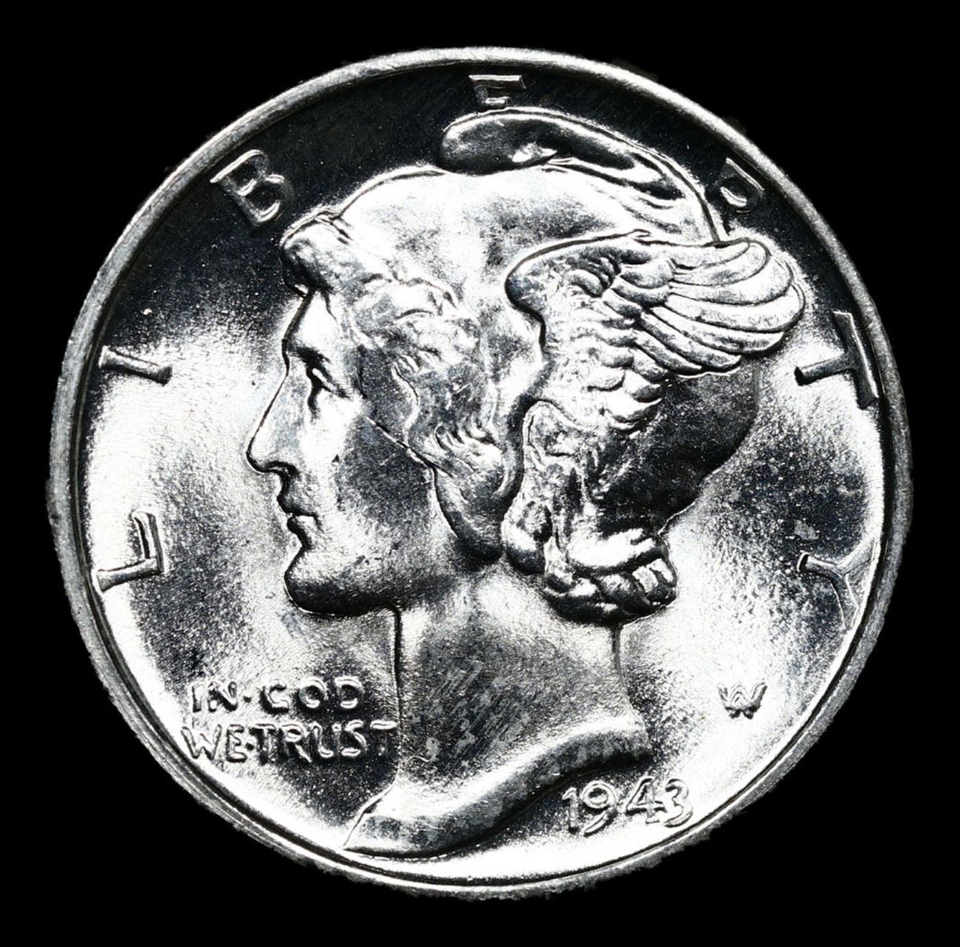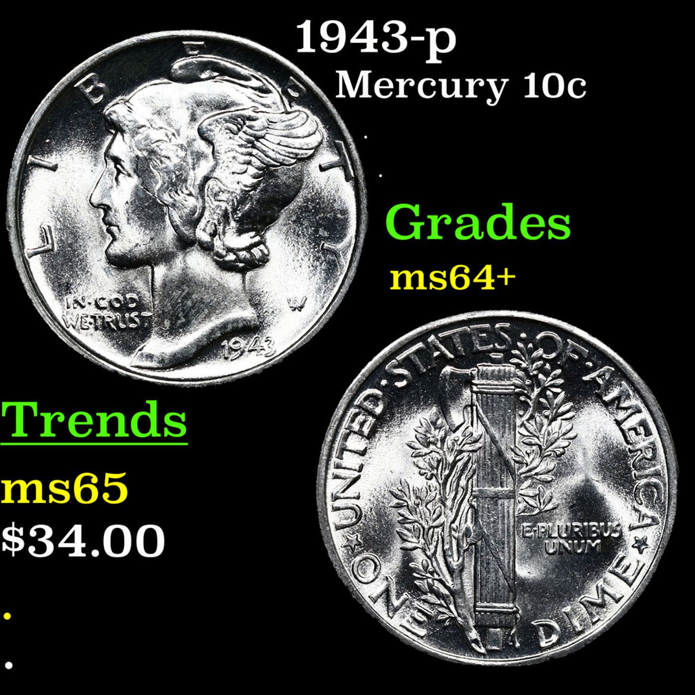 1943-p Mercury Dime 10c Grades Choice+ Unc.