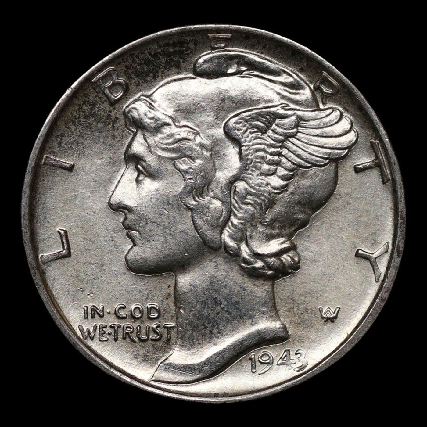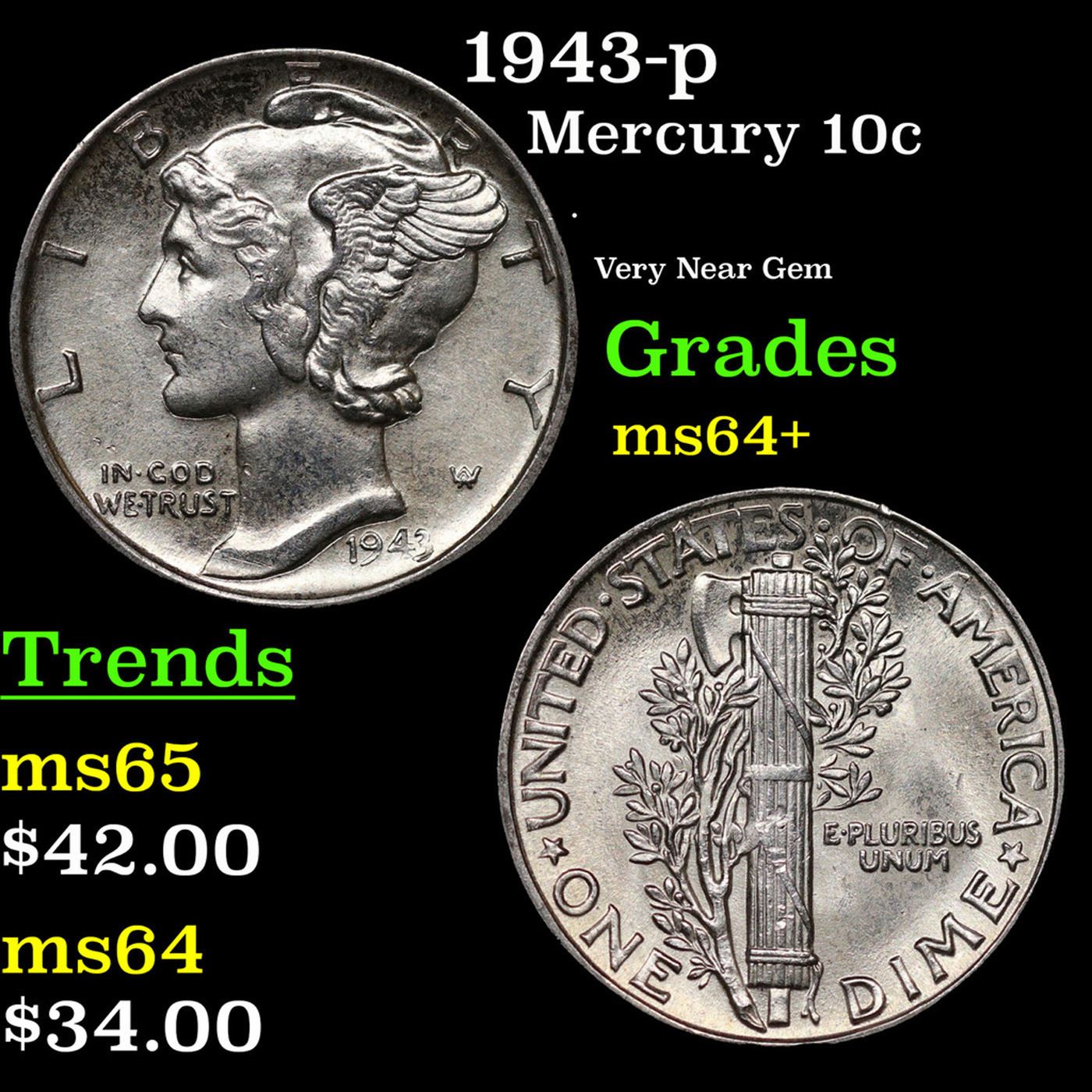 1943-p Mercury Dime 10c Grades Choice+ Unc.