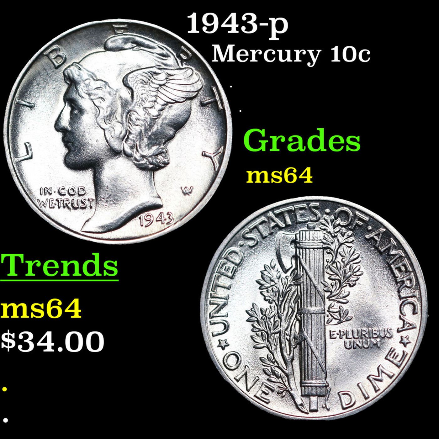 1943-p Mercury Dime 10c Grades Choice Unc.