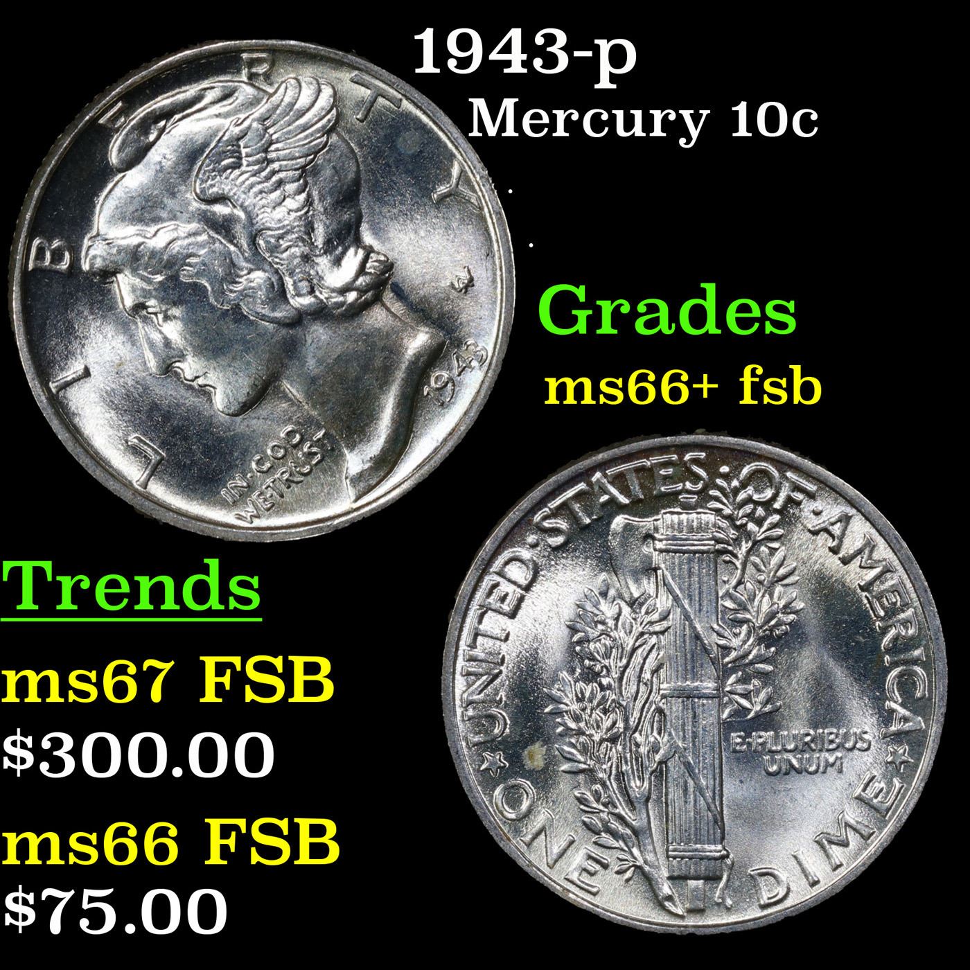 1943-p Mercury Dime 10c Grades GEM++ FSB.
