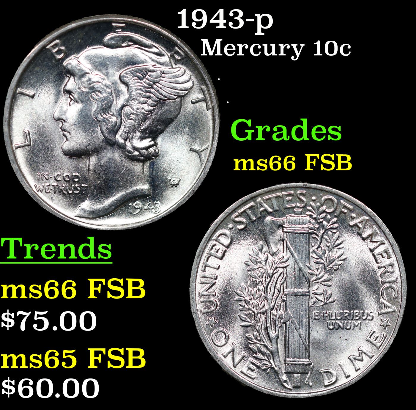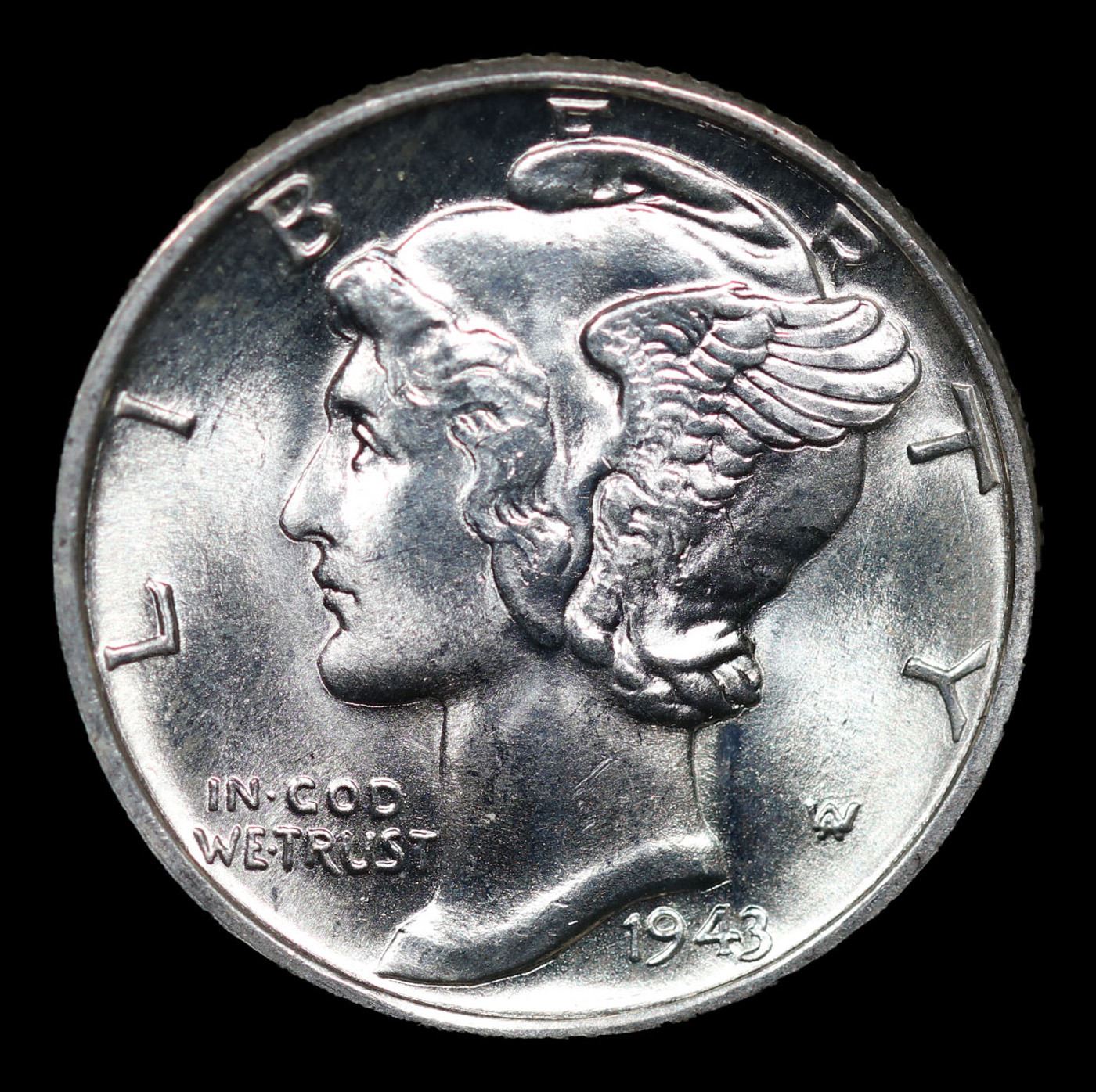 1943-p Mercury Dime 10c Grades GEM+ FSB.