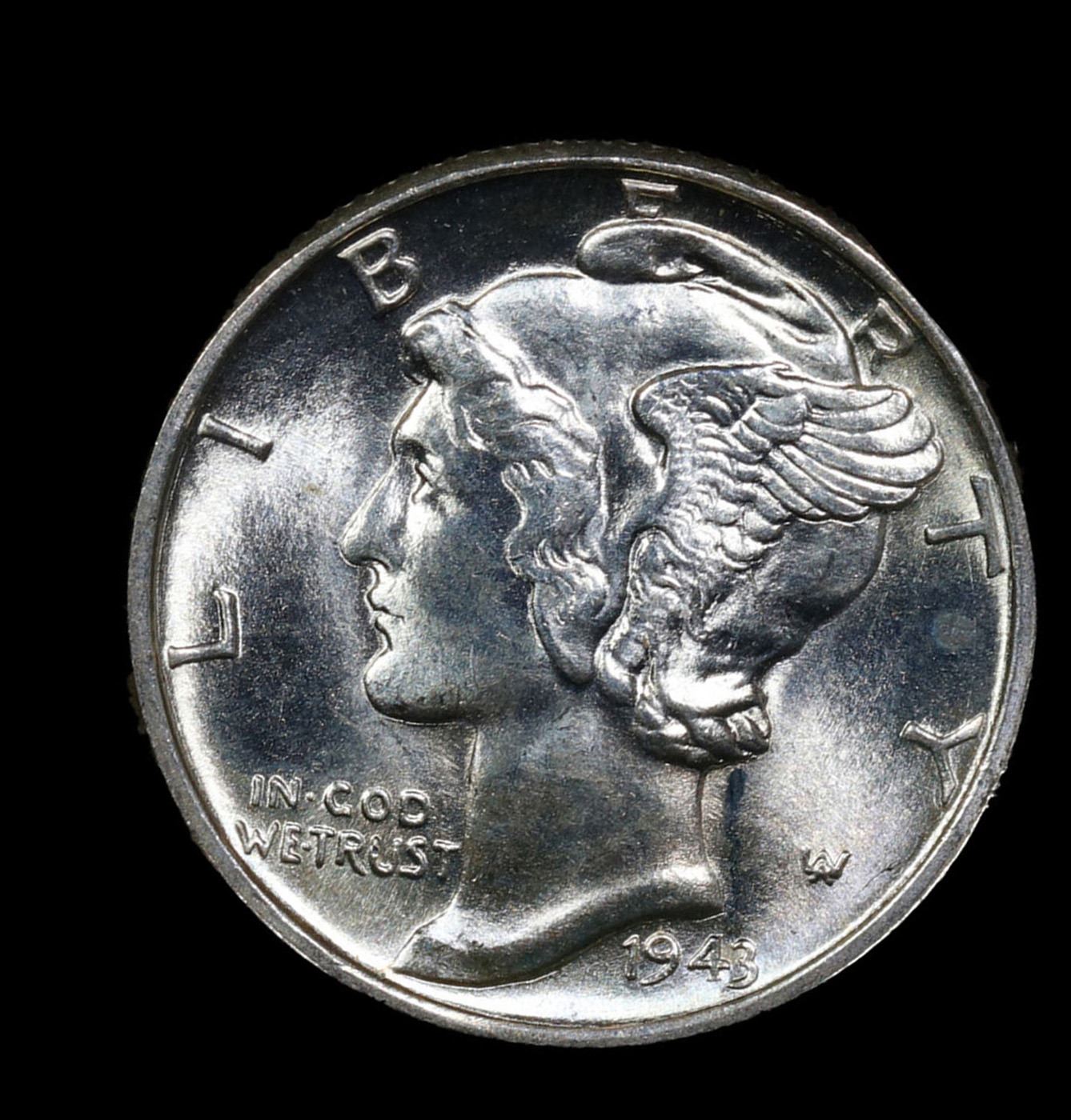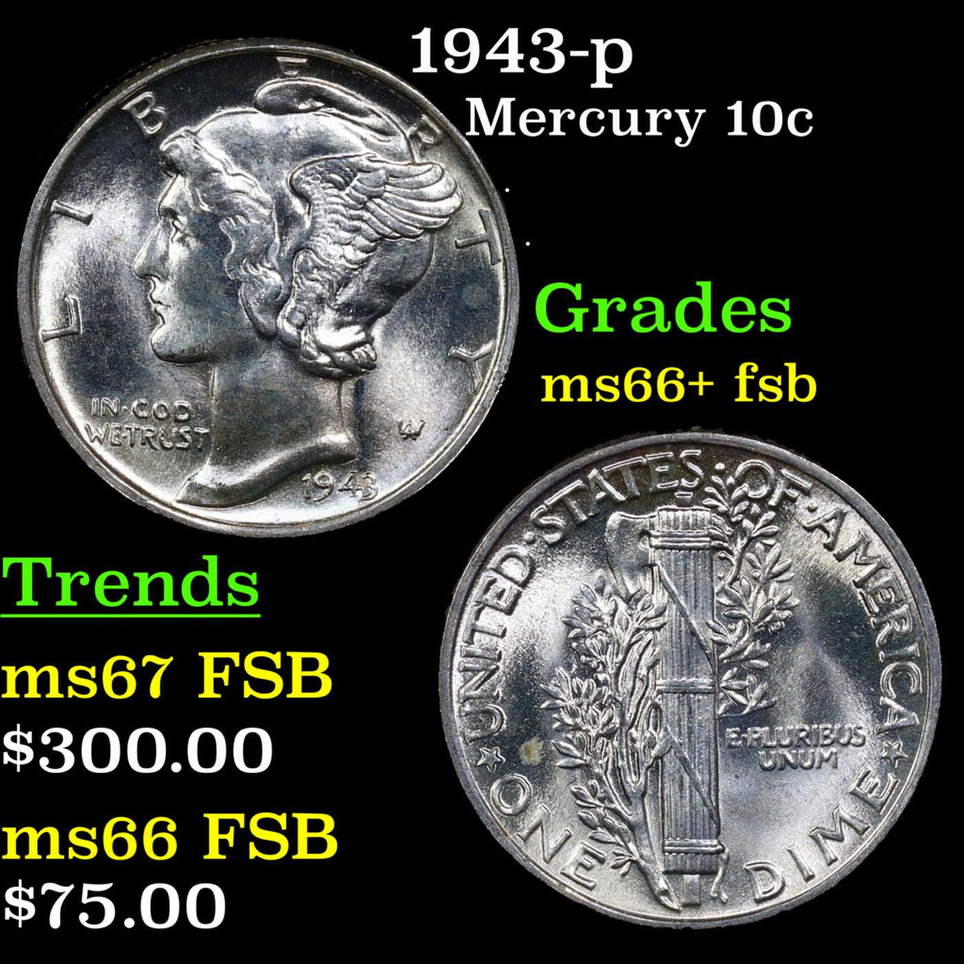1943-p Mercury Dime 10c Grades GEM++ FSB.