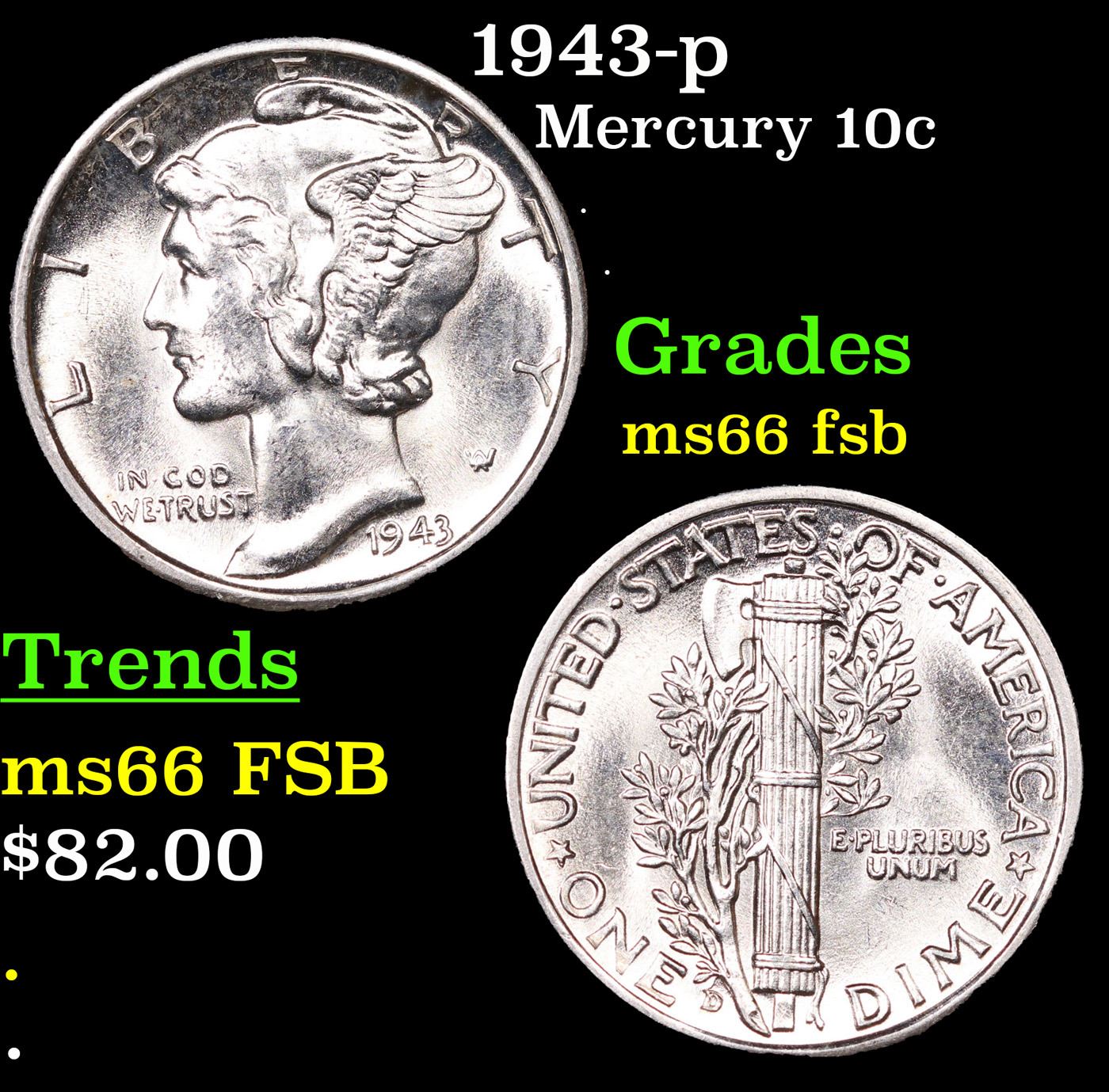 1943-p Mercury Dime 10c Grades GEM+ FSB.