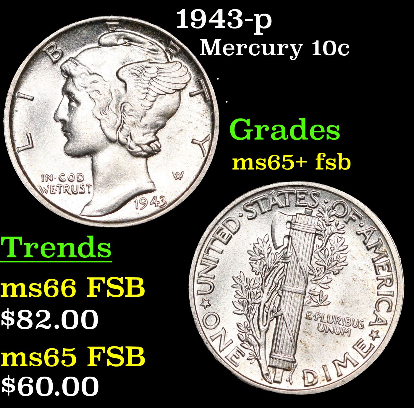 1943-p Mercury Dime 10c Grades GEM+ FSB.